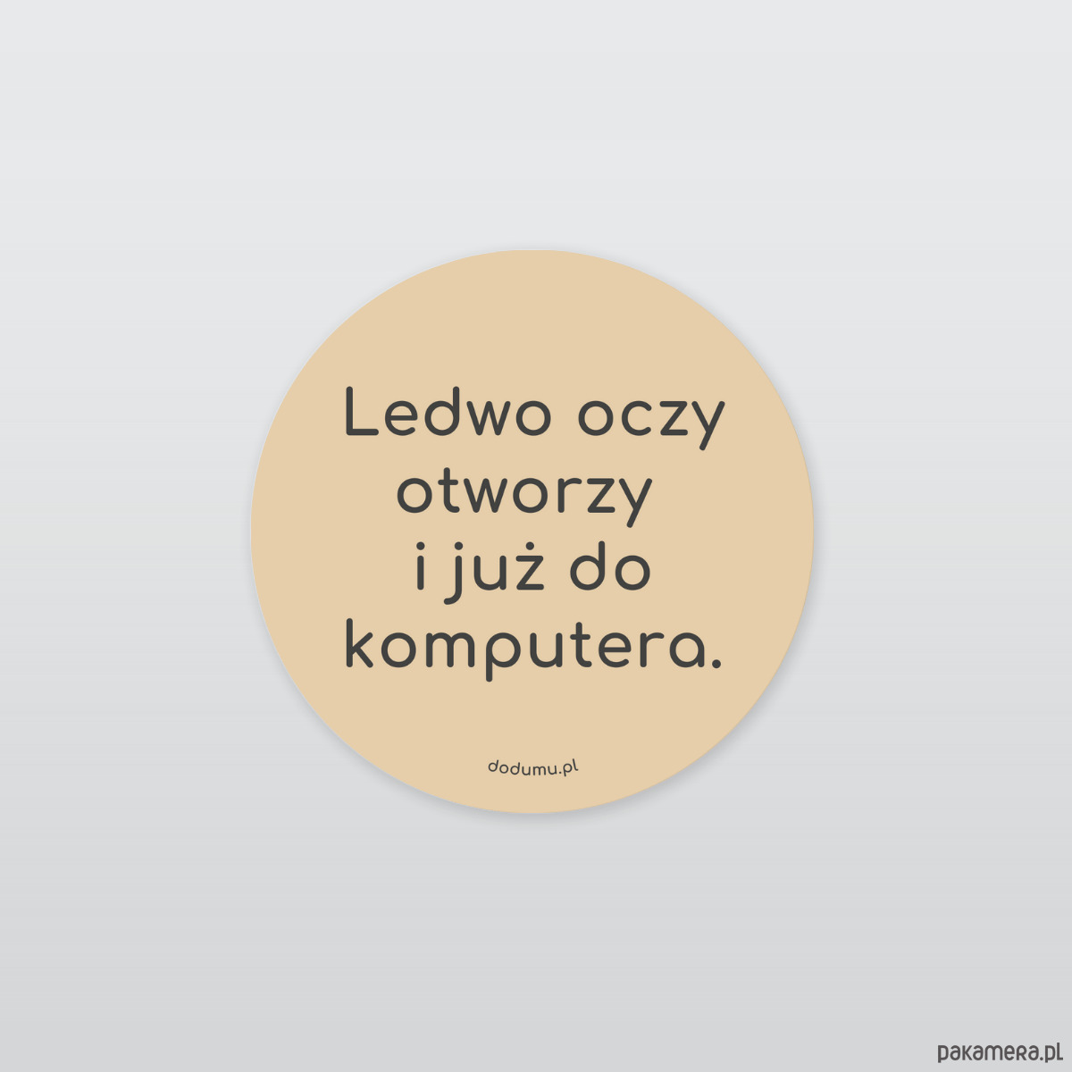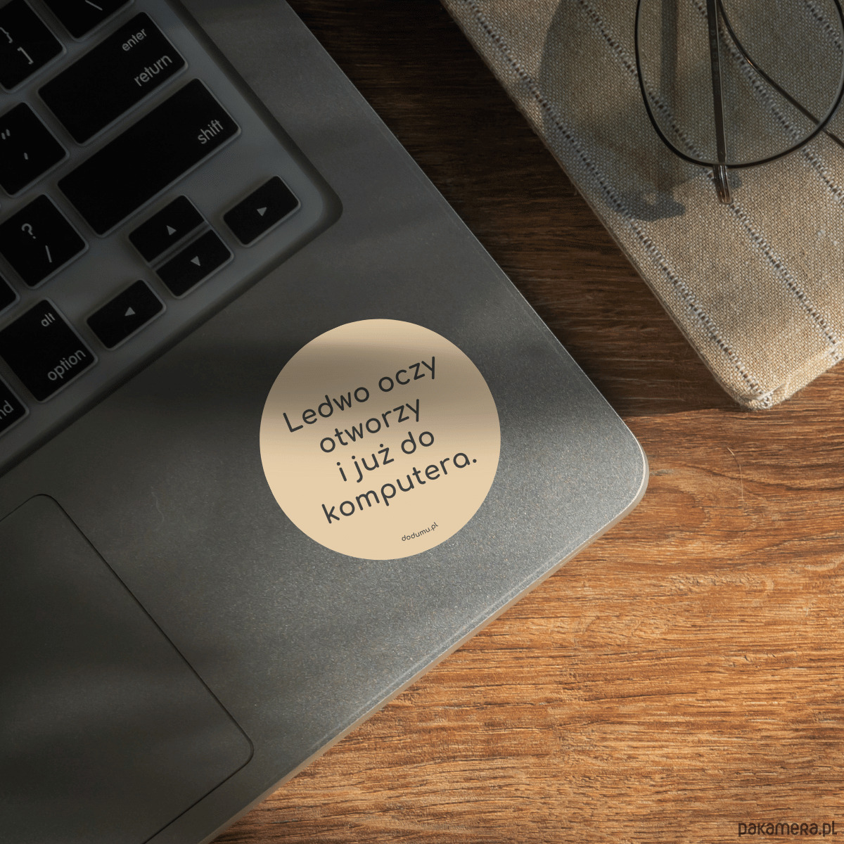 Naklejka na laptopa, ledwo oczy otworzy i już do komputera