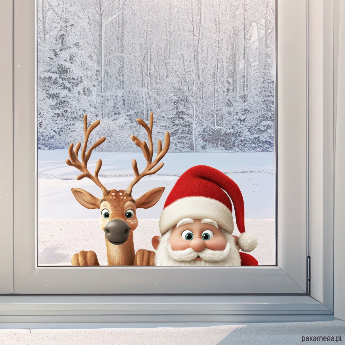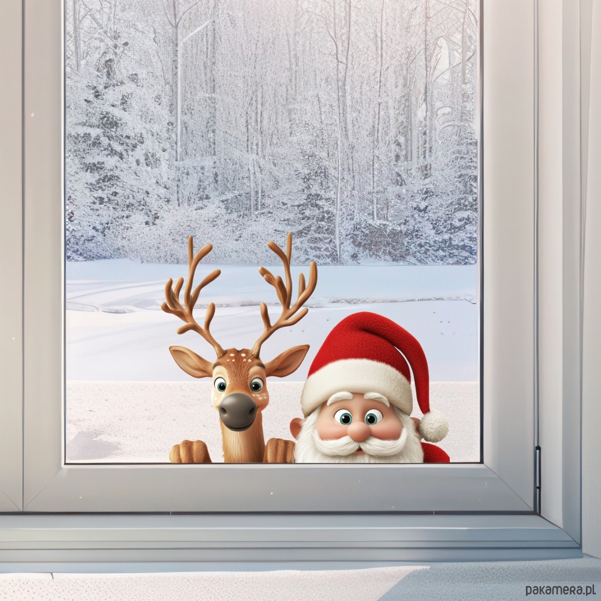Wprowadź do swojego domu magiczną atmosferę świąt dzięki naszym wyjątkowym naklejkom na okna! Stwórz niezapomniany klimat Bożego Narodzenia, dekorując swoje okna wizerunkami uśmiechniętego Świętego Mikołaja i jego wiernego renifera, które wyglądają, jakby zaglądali do środka!