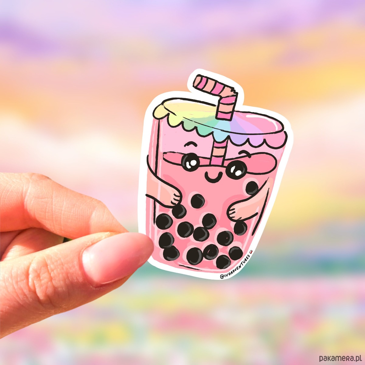 Naklejka Tęczowa Boba - Bubble Tea - kolorowa dekoracja na MacBooka, iPad, telefon | Idealny prezent dla miłośników Bubble Tea | Stylowy akcent na bidon, butelkę czy planer | Personalizuj swój sprzęt z uroczymi dziełami sztuki.