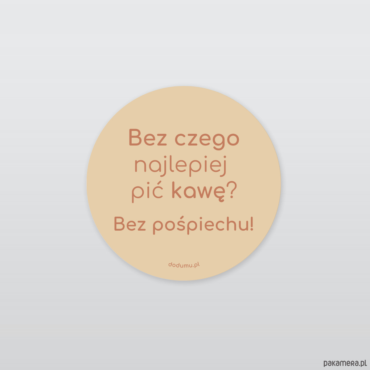 Okrągła naklejka o średnicy 5 cm z dbałością o szczegóły wykonana. Wielką przyjemność sprawi, kiedy zostanie podarowana. W klasycznych kolorach – połączonych zgrabnie, prosta czcionka pasuje tu snadnie. Wlepka z mądrą treścią świetnie się prezentuje i do każdego miłośnika kawy idealnie pasuje. Okazji nie trzeba: czy urodziny, imieniny, Dzień Pracy, awans, Dzień Kobiet, Dzień Ojca, jubileusze, rocznice, święta, pokaż bliskiej osobie, że o niej pamiętasz.