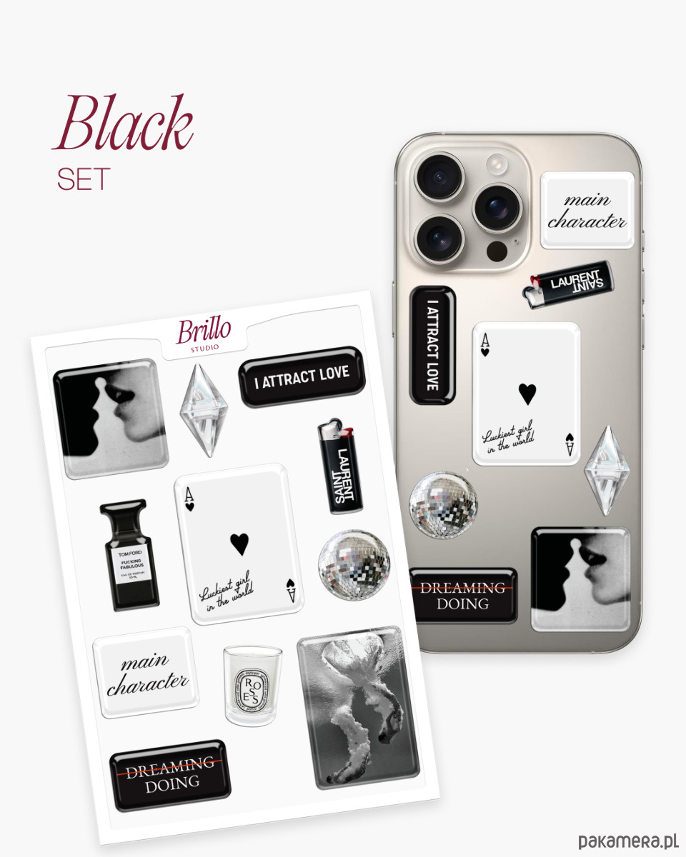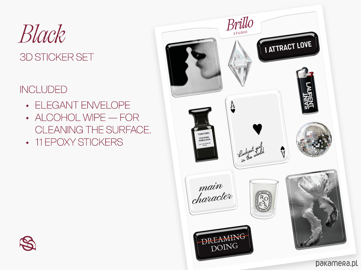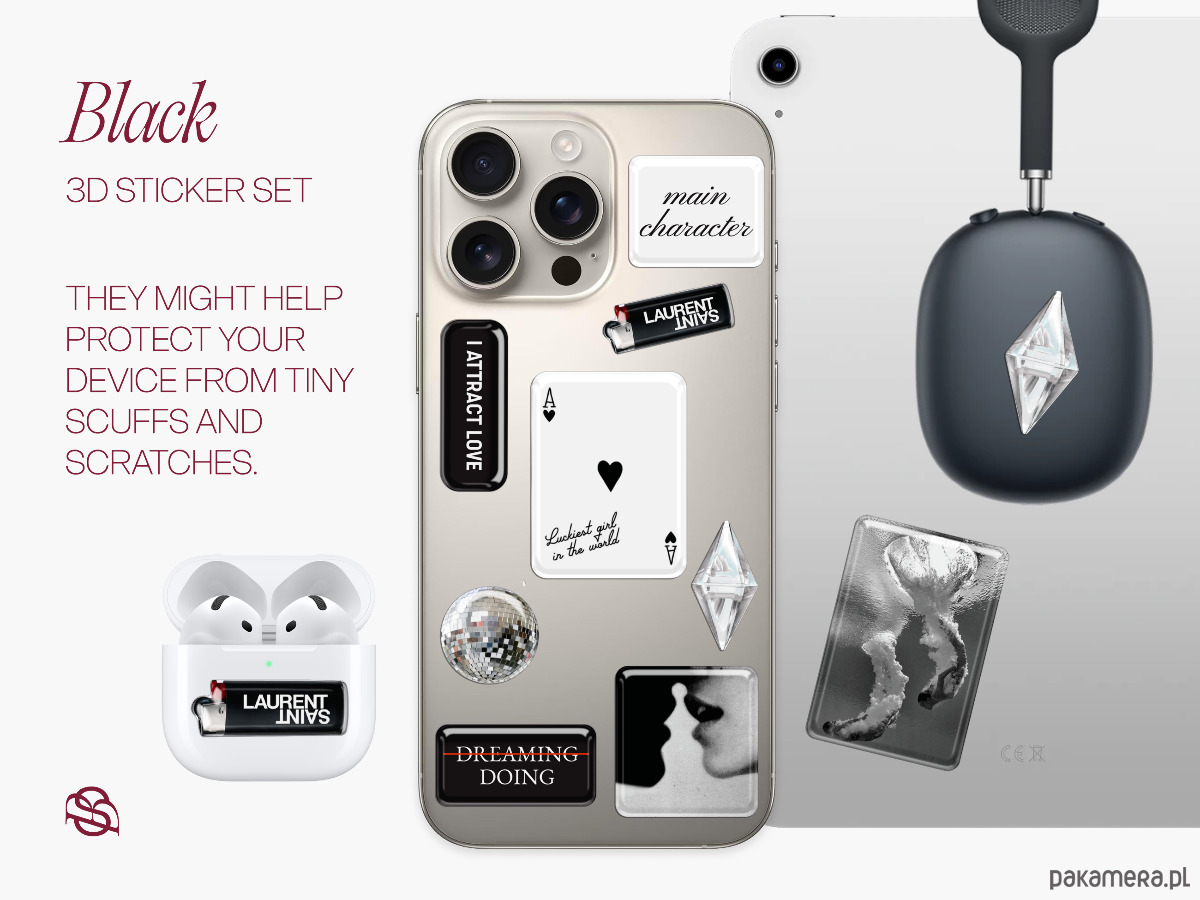 Naklejki 3D czarny elegancki zestaw na etui oraz laptop