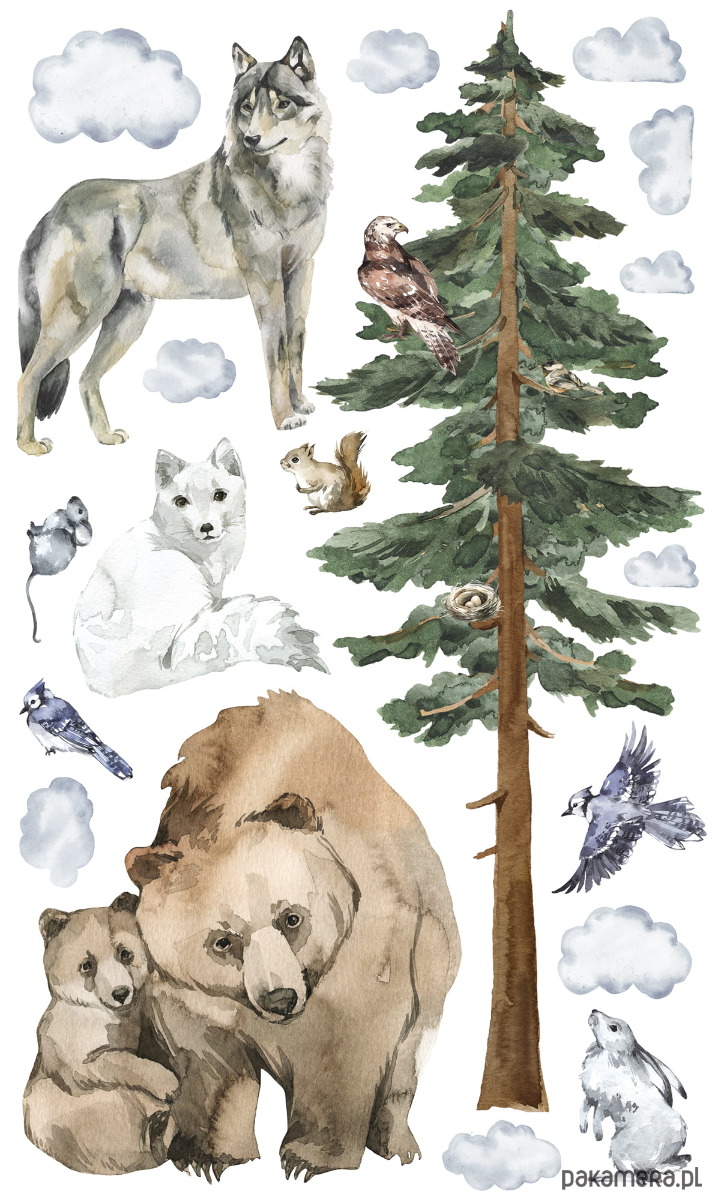 Naturalny wygląd naklejek uzyskuje się poprzez cyfrowe malowanie akwarelą. Naklejki mają gładką, matową powierzchnię i są wycięte po obrysie. Zestaw zawiera wszystkie naklejki widoczne na wizualizacji.