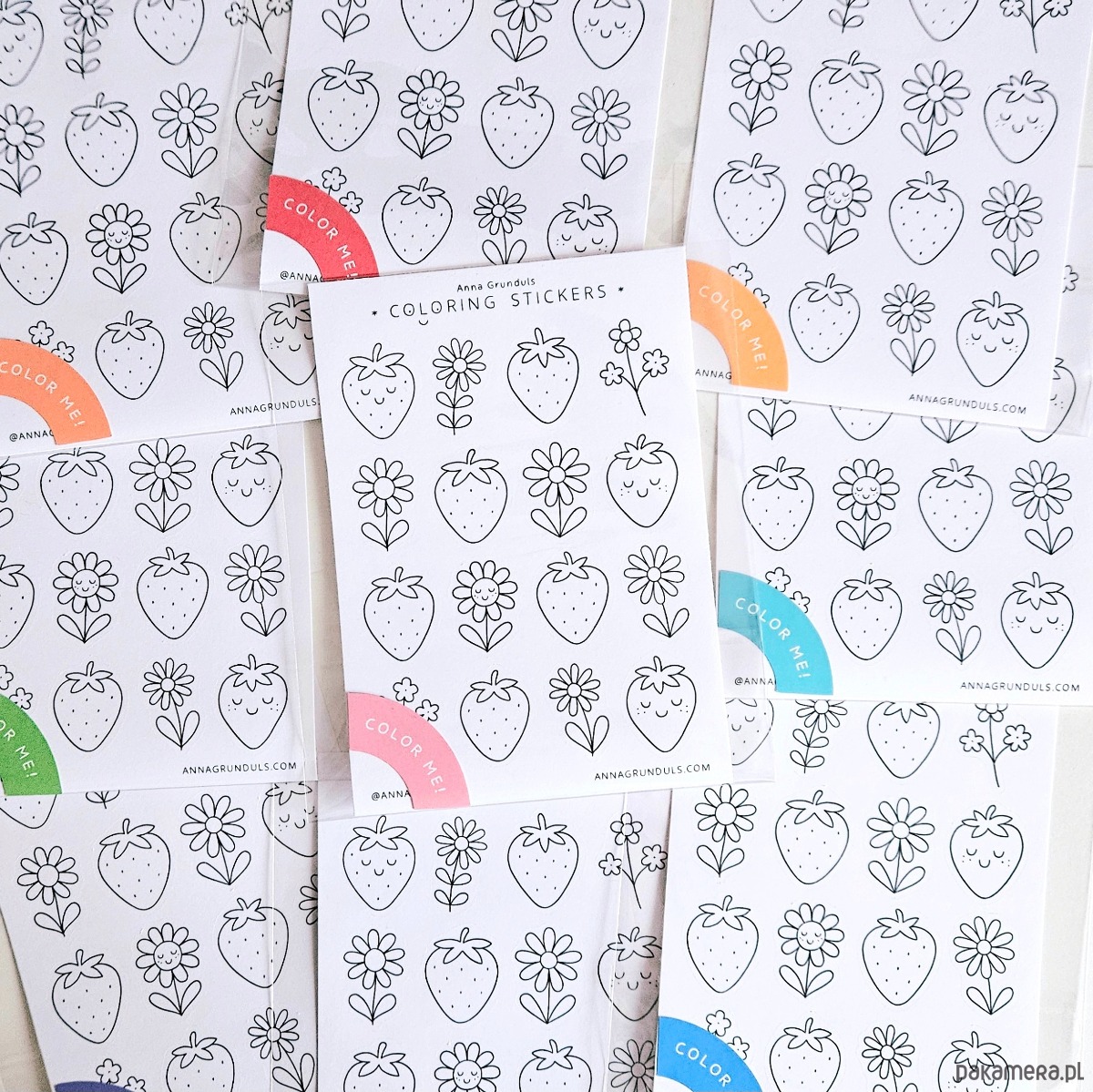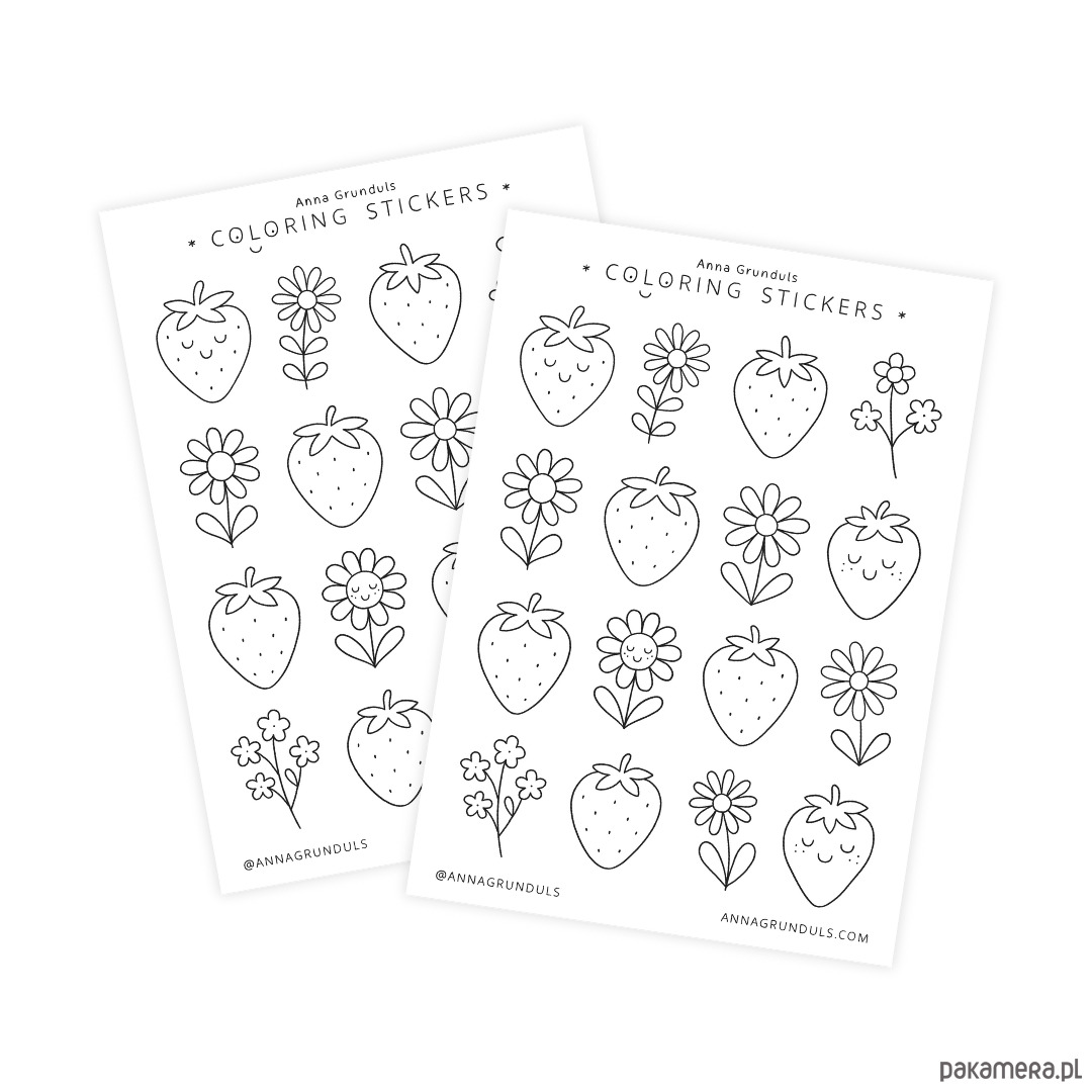 Naklejki do Kolorowania Truskawki Stokrotki 1 Arkusz