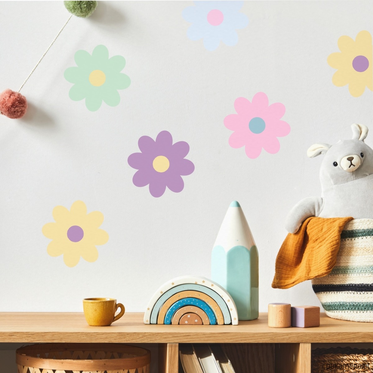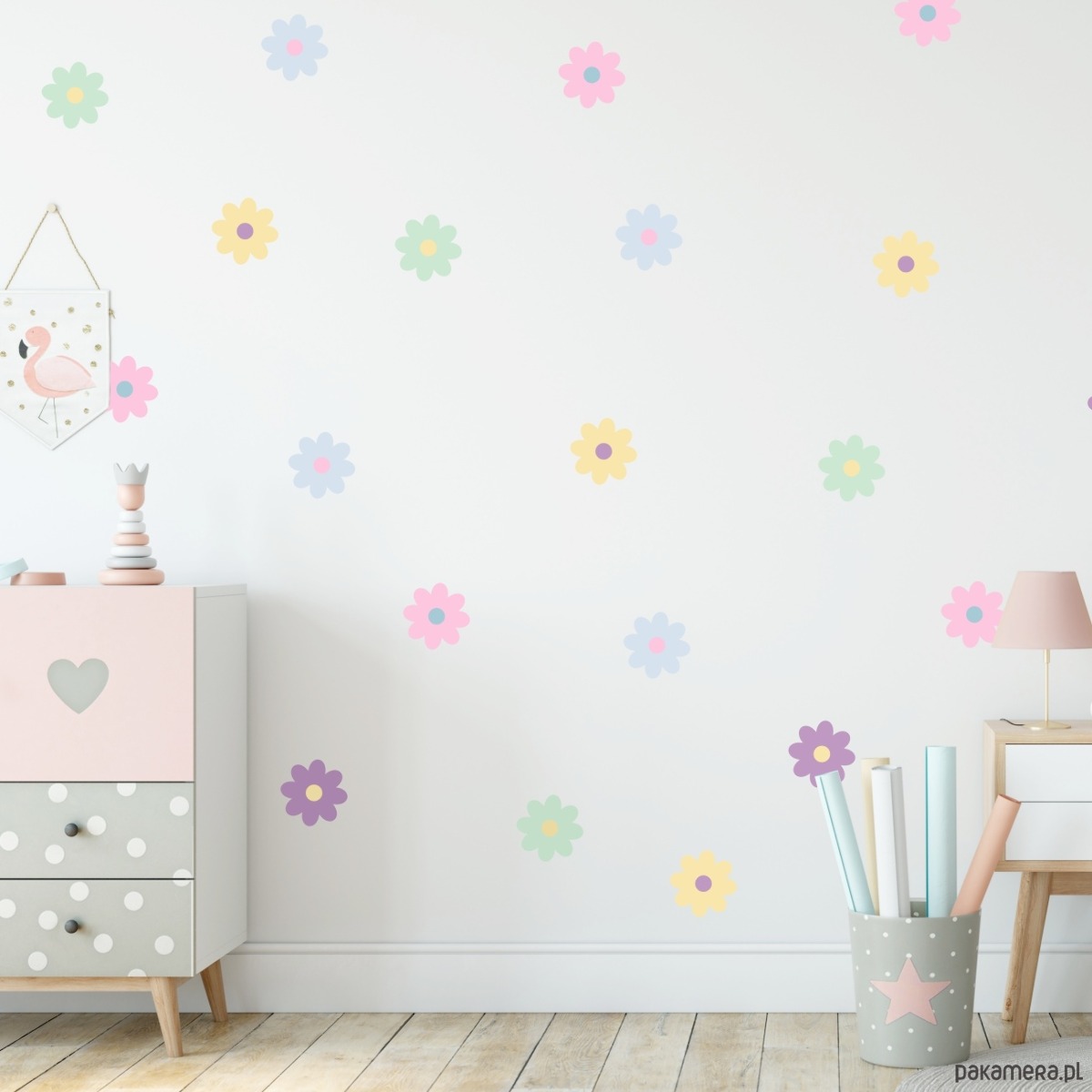 Naklejki do pokoju dziewczynki Kolorowe Stokrotki AM174
