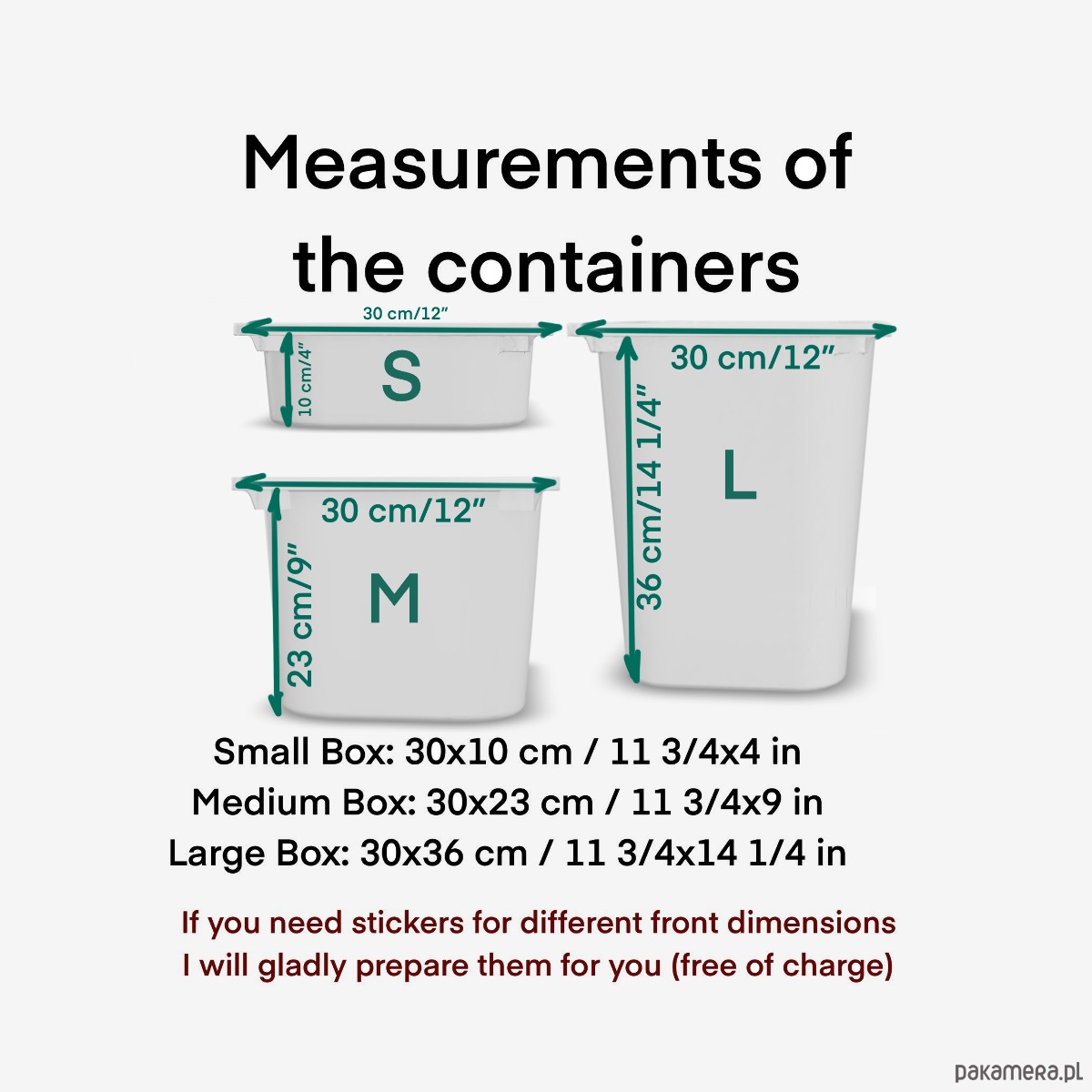 Dostępne w 3 rozmiarach na pojemniki o szerokości 30 cm.