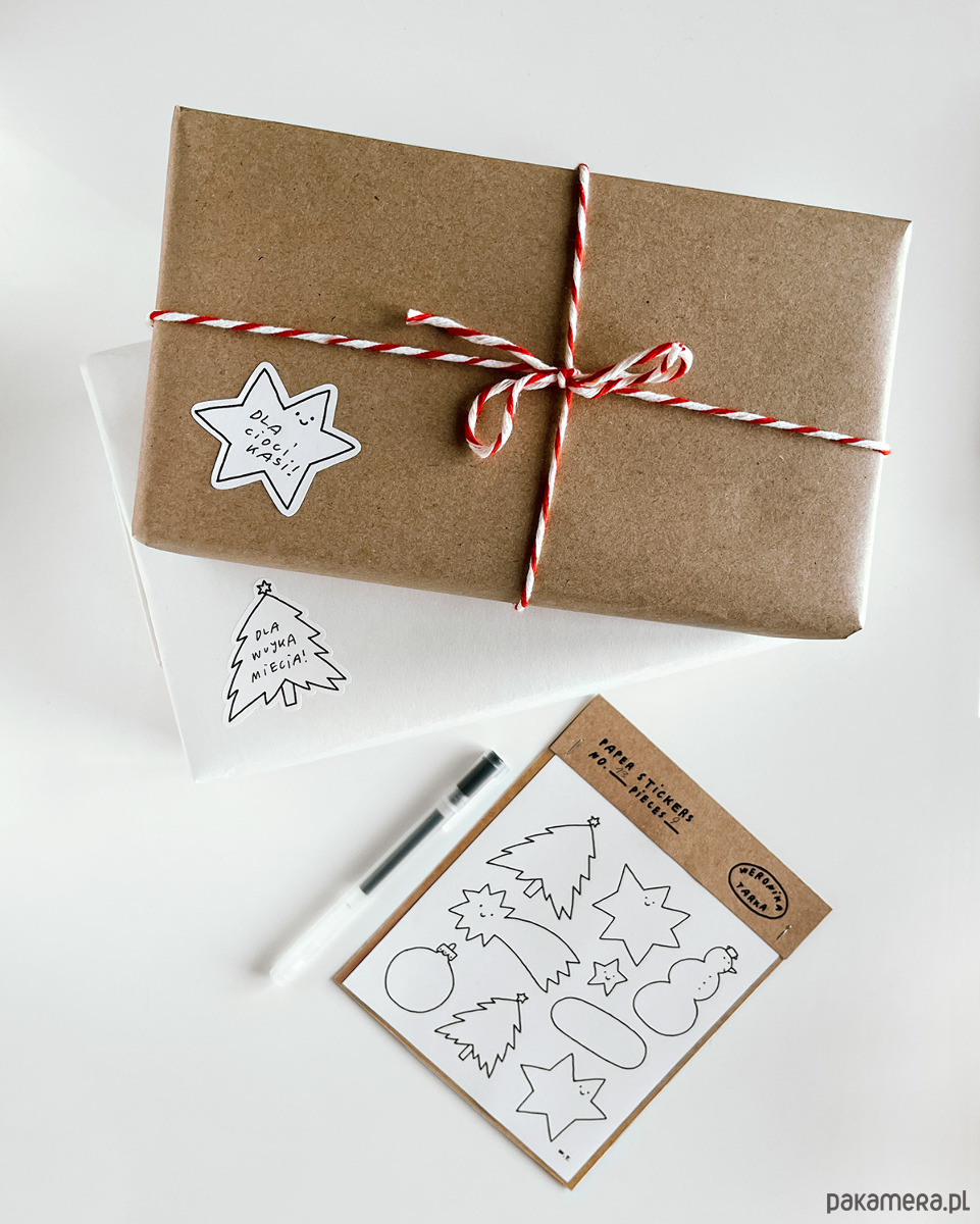 Wystarczy nakleić na paczkę/torebkę, wpisać imię i finito. Rachu ciachu i po strachu, prezenty świąteczne podpisane. Arkusz wystarczy na 8 podpisów, plus jedna sympatyczna gwiazdka dla ozdoby.