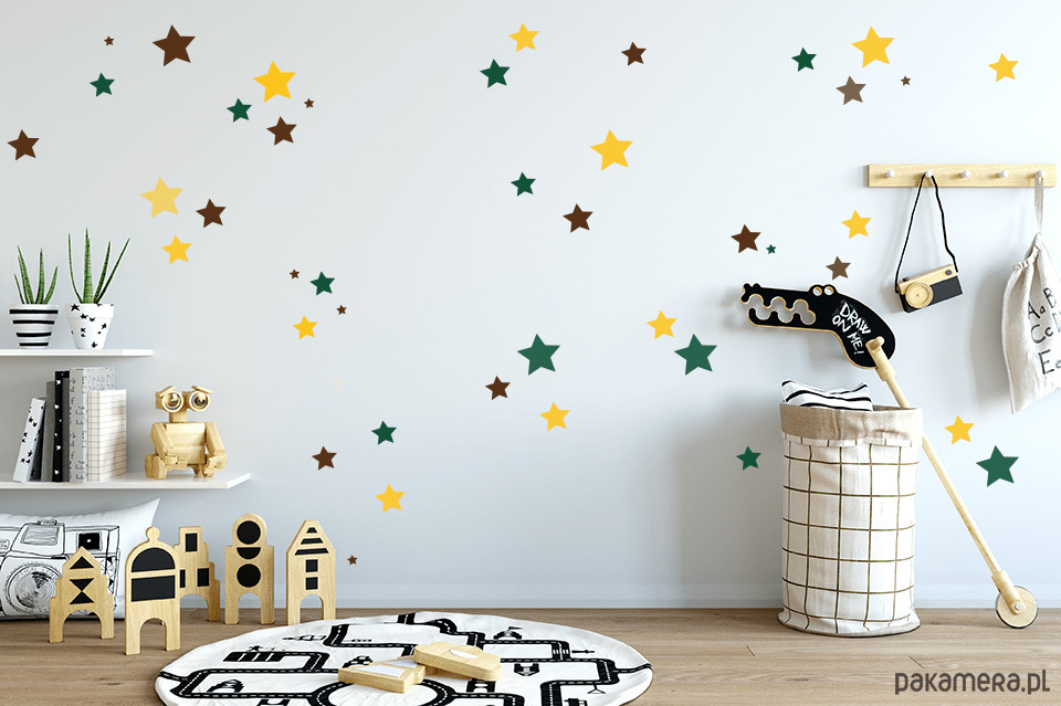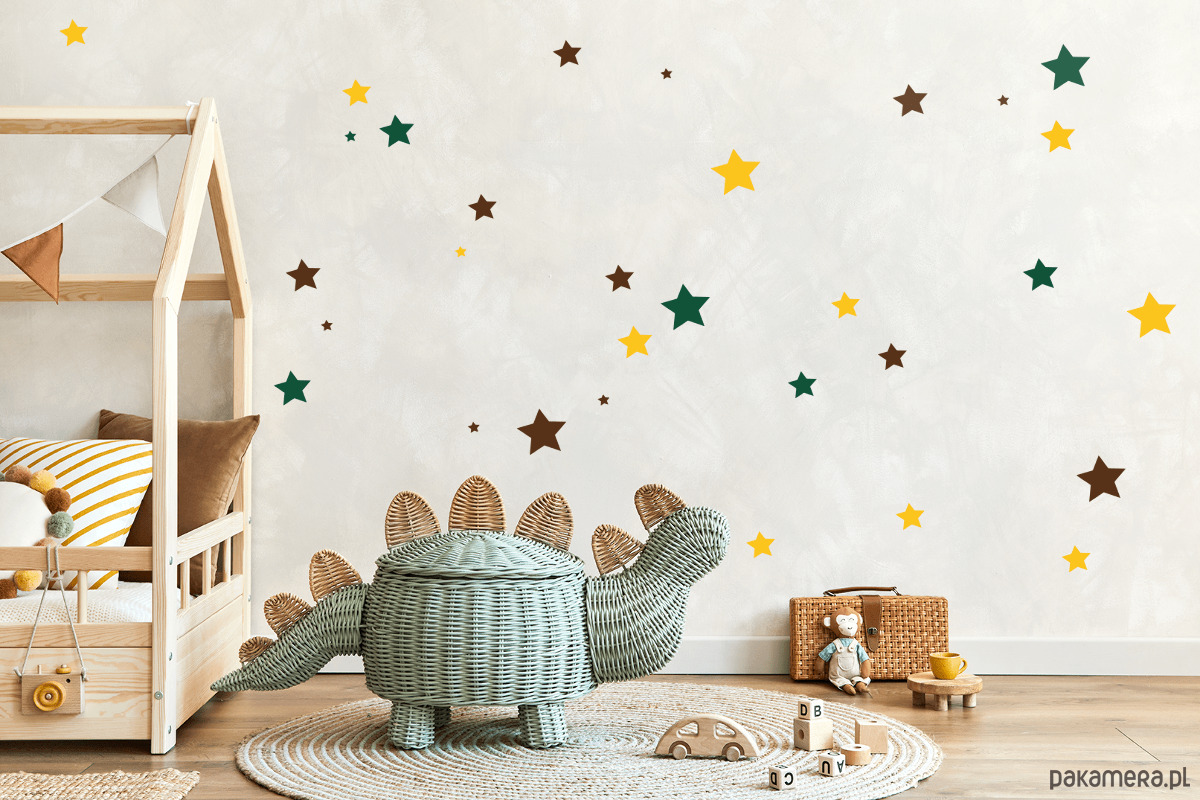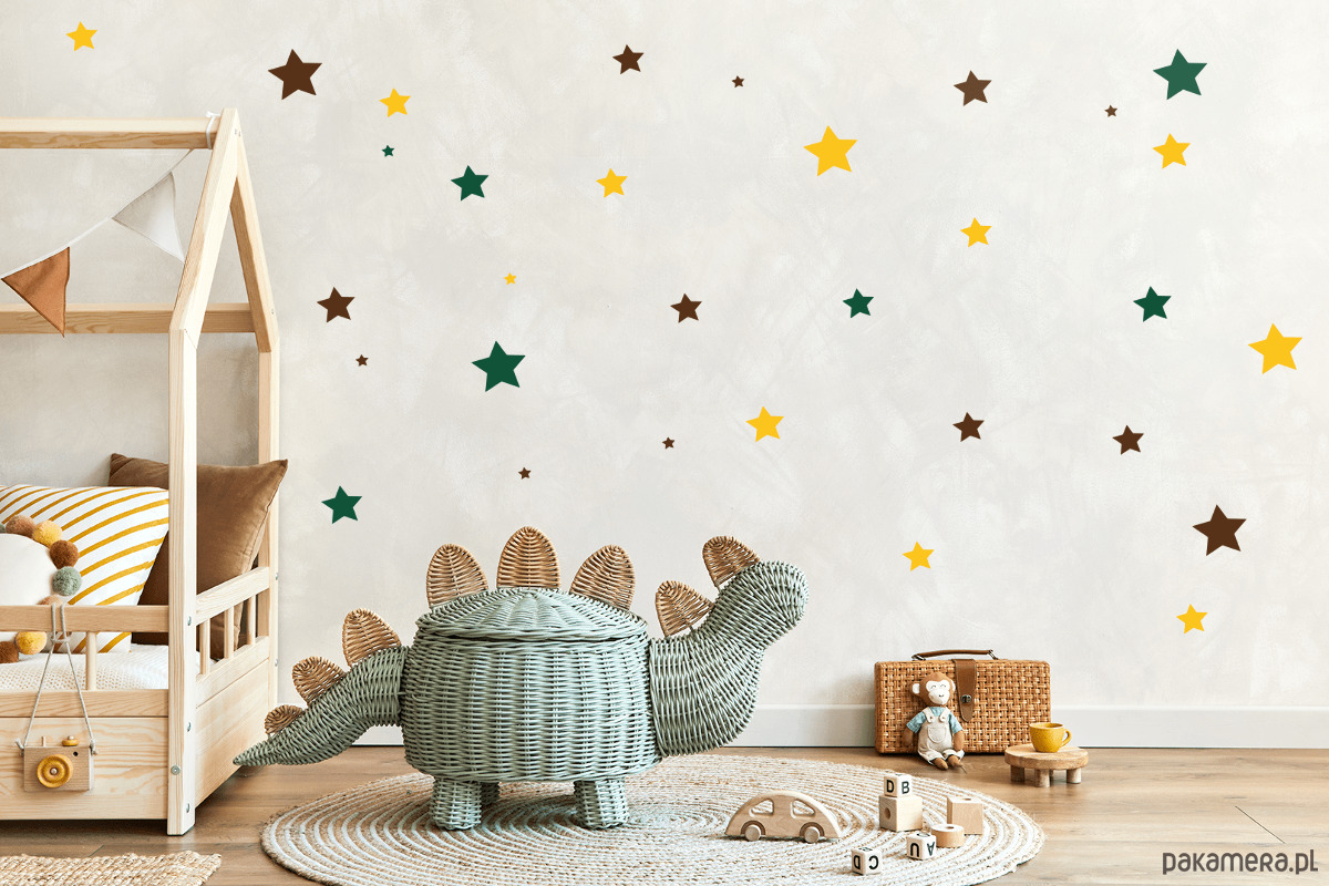 Gwiazdki naklejki ścienne to doskonały sposób na dodanie indywidualnego charakteru każdemu wnętrzu. Wybór kolorów, takich jak żółty, zielony i brązowy, może wprowadzić do pomieszczenia ciepłą i przytulną atmosferę, a jednocześnie dodać mu energii i świeżości.
