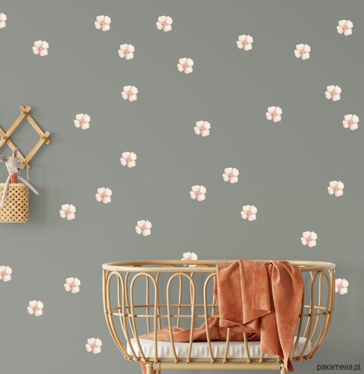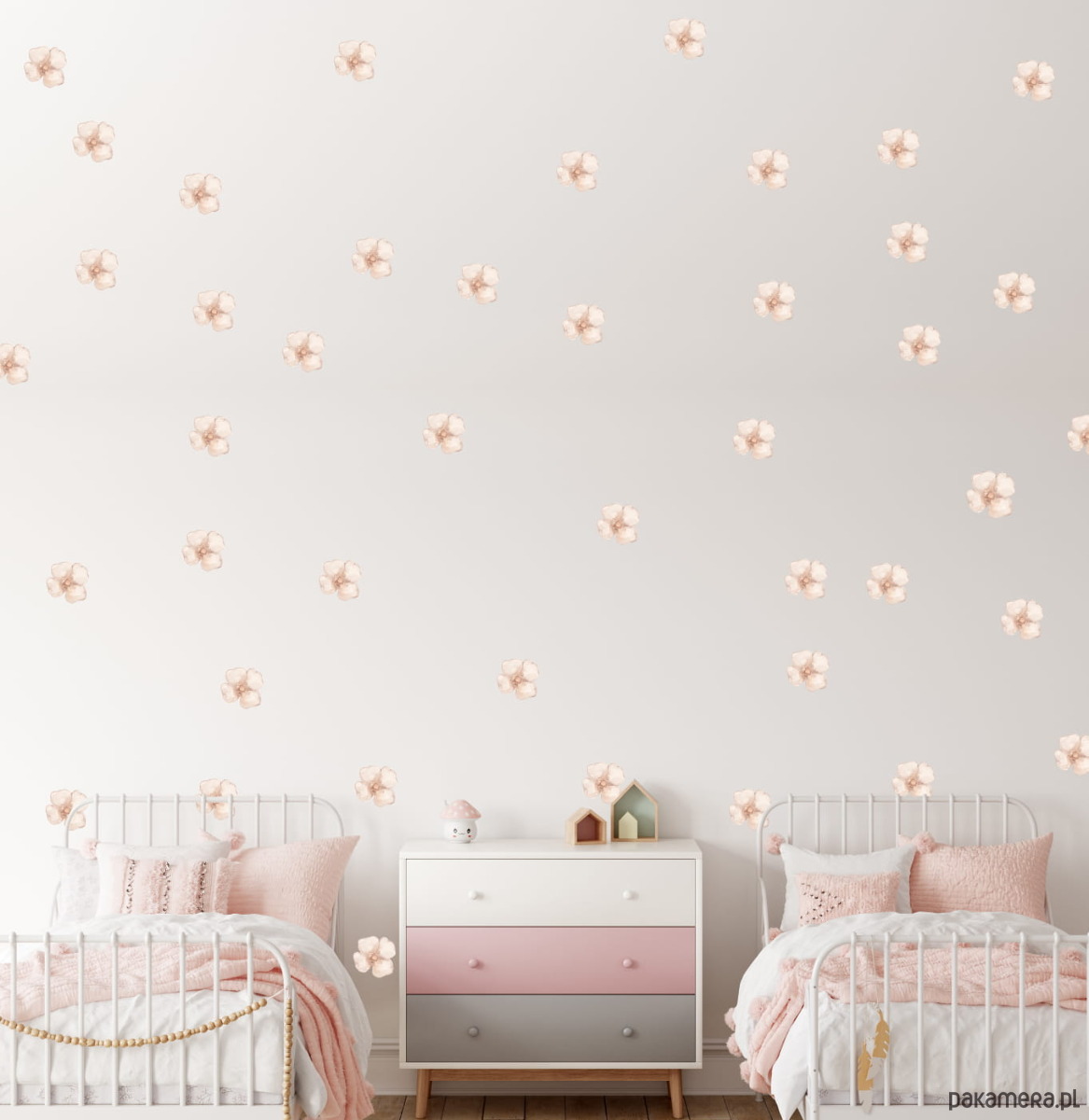 Mini piwonie to drobne naklejki ścienne z kwiatowym motywem, malowane na wyłączność. Elementy są wycinane po obrysie i można je dowolnie rozmieścić na ścianie, tworząc lekką i spójną dekorację w pokoju dziecka. Zestaw pasuje stylistycznie i kolorystycznie do produktu Naklejki na ścianę | Piwonie Sunrise, dzięki czemu oba komplety można łączyć w jednej aranżacji.