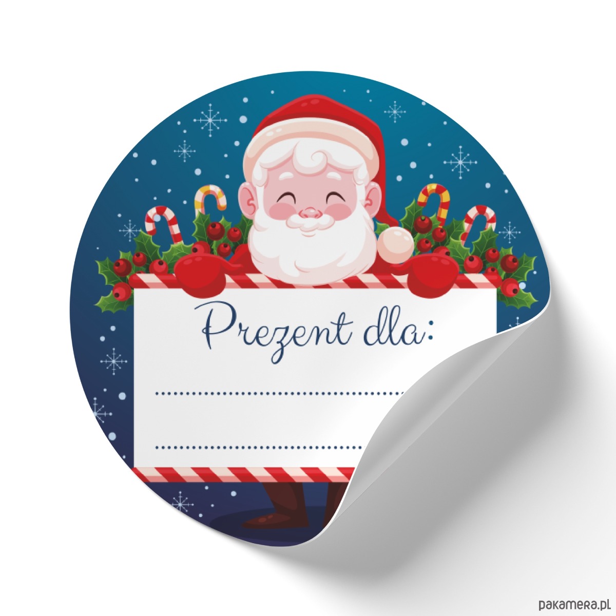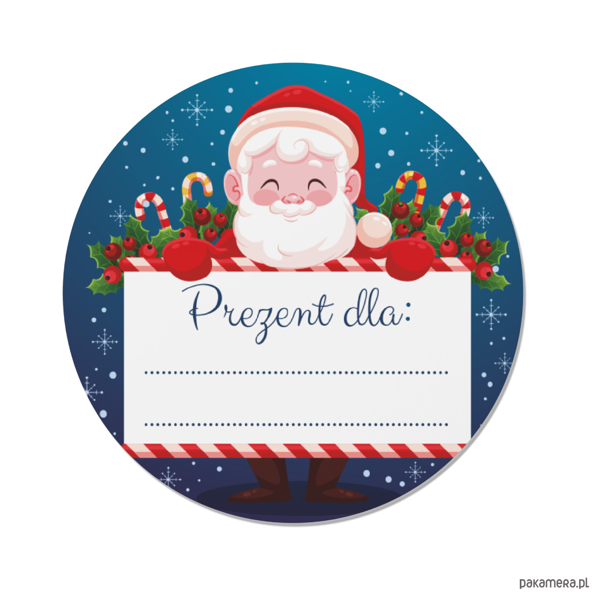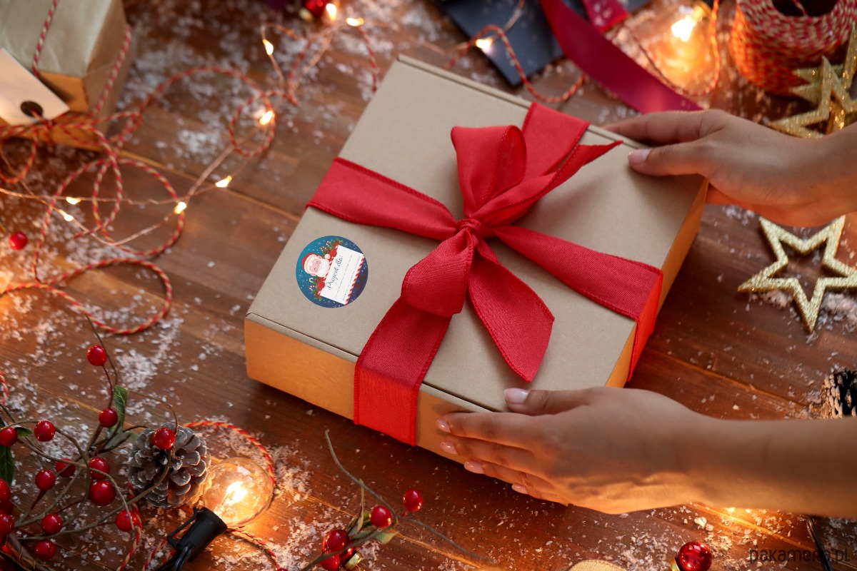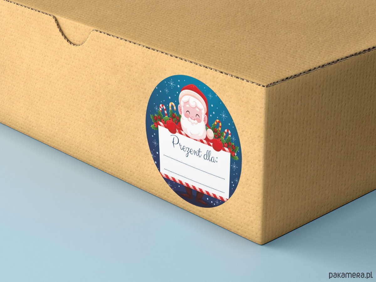 Okrągła, samoprzylepna naklejka z Mikołajem ozdobi Twój prezent oraz wyróżni go wśród innych, dzięki samodzielnemu wypełnieniu dla kogo jest prezent unikniemy pomyłki i skierujemy go tylko do obdarowywanego.