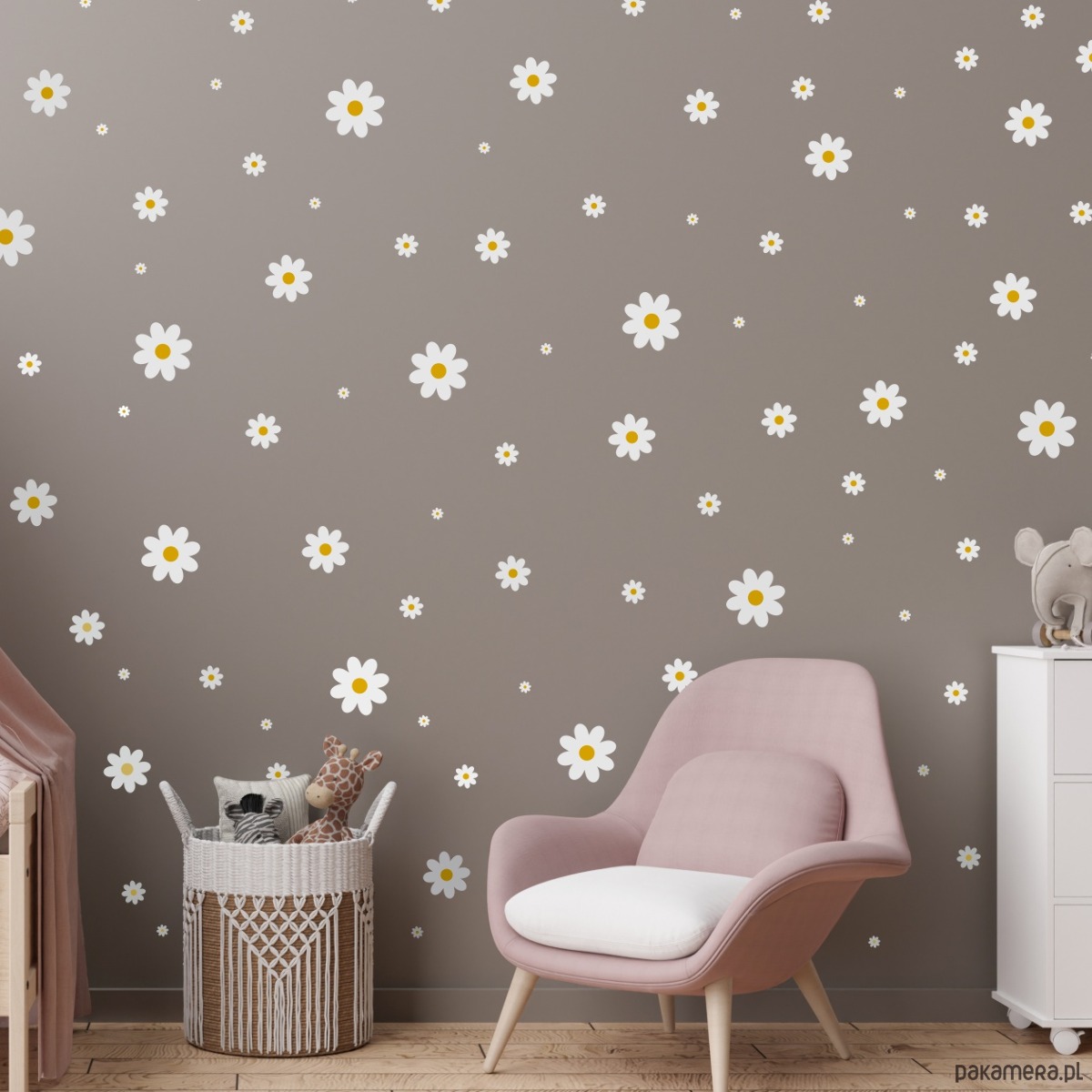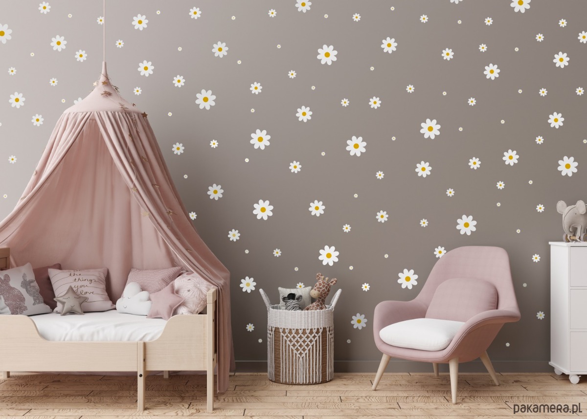 Naklejki ścienne w kształcie stokrotek to doskonały sposób na szybką i efektowną metamorfozę pokoju dziecięcego. Delikatne białe kwiatki z żółtymi środkami w różnych rozmiarach tworzą urokliwą, wiosenną kompozycję, która nada wnętrzu lekkości i świeżości. Naklejki są wykonane z wysokiej jakości folii samoprzylepnej, dzięki czemu łatwo je aplikować i w razie potrzeby usuwać bez pozostawiania śladów na ścianie.
