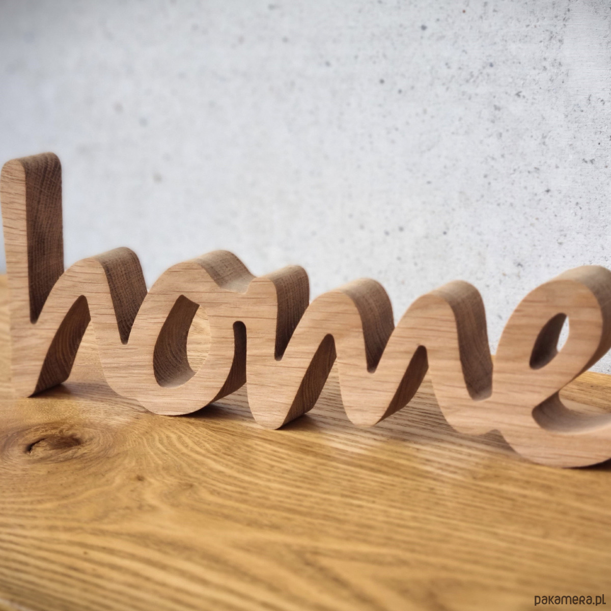 Napis wykonany z litego drewna dębowego, który może mieć wiele zastosowań. To przede wszystkim cudowna dekoracja, która może ozdabiać regał czy półkę. Umieszczona na ścianie będzie też genialnym dodatkiem do przedpokoju czy salonu. Dzięki tej ilości możliwych funkcji napis home staje się także genialnym pomysłem na prezent, bez względu na okazję czy płeć bliskiej nam osoby.