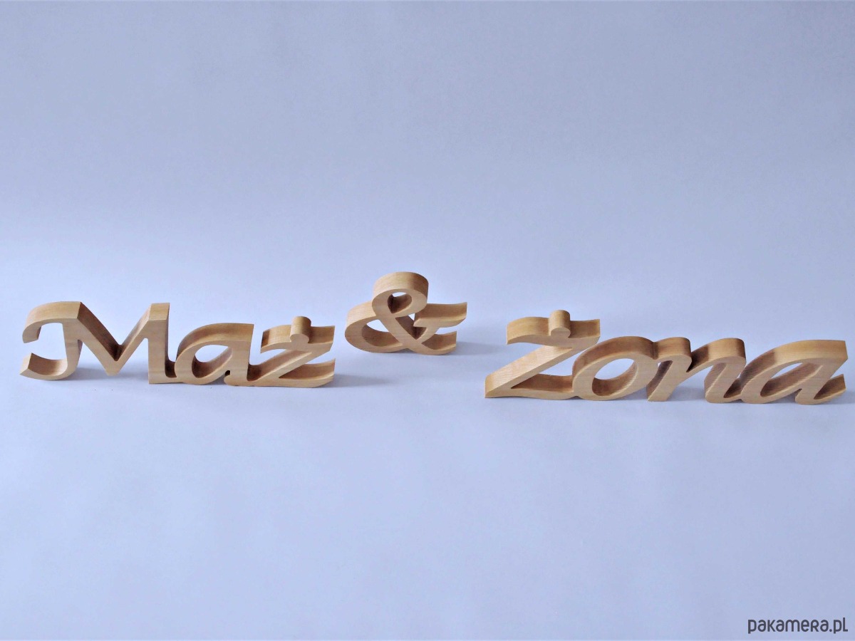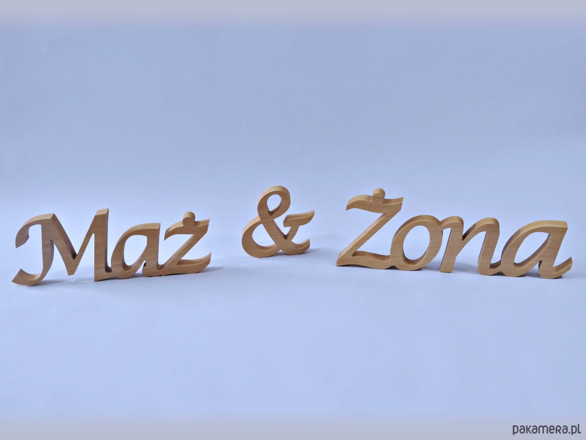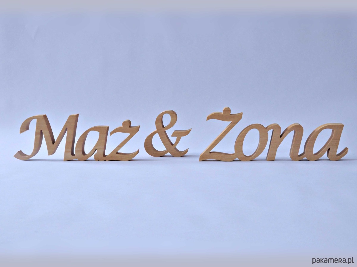 Napis z drewna Żona & Mąż, stojący, dekoracje ślubne