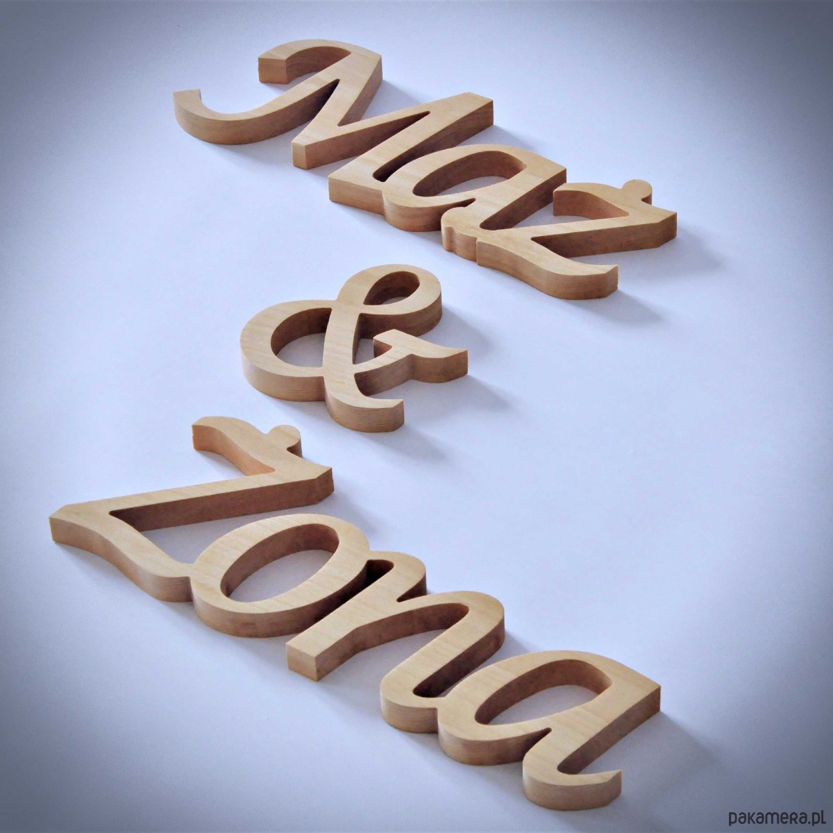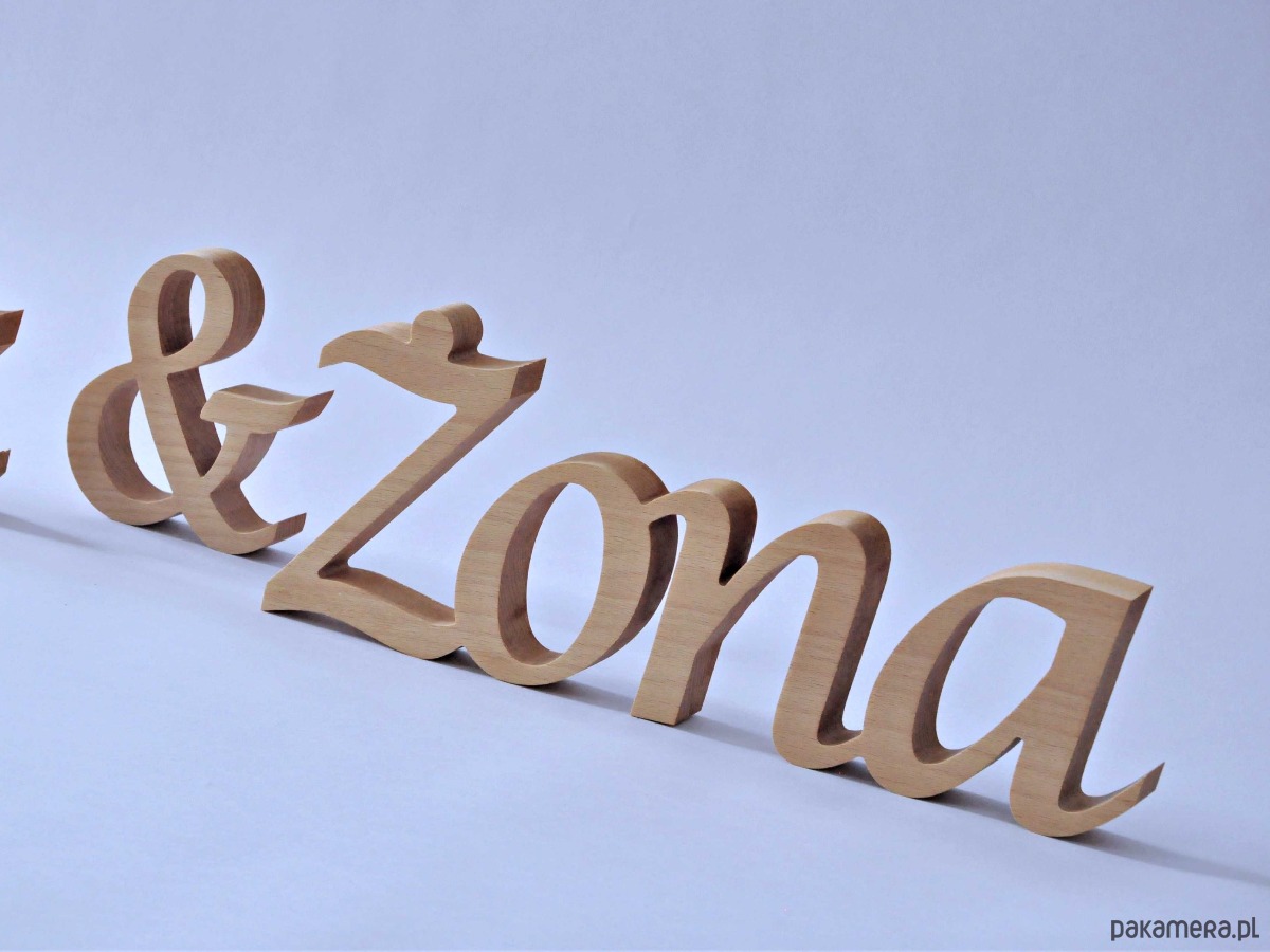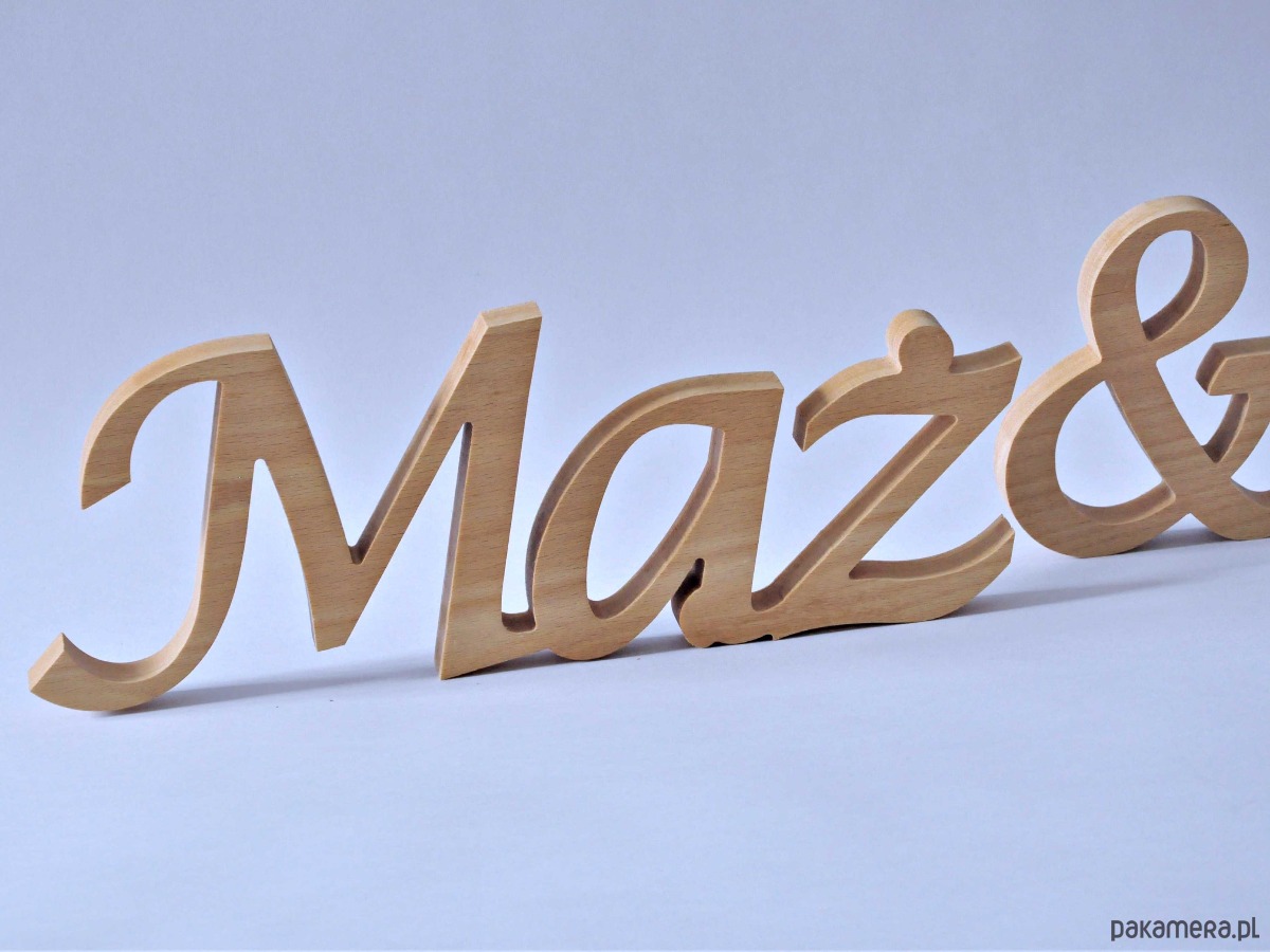 Napis z drewna Żona & Mąż, stojący, dekoracje ślubne