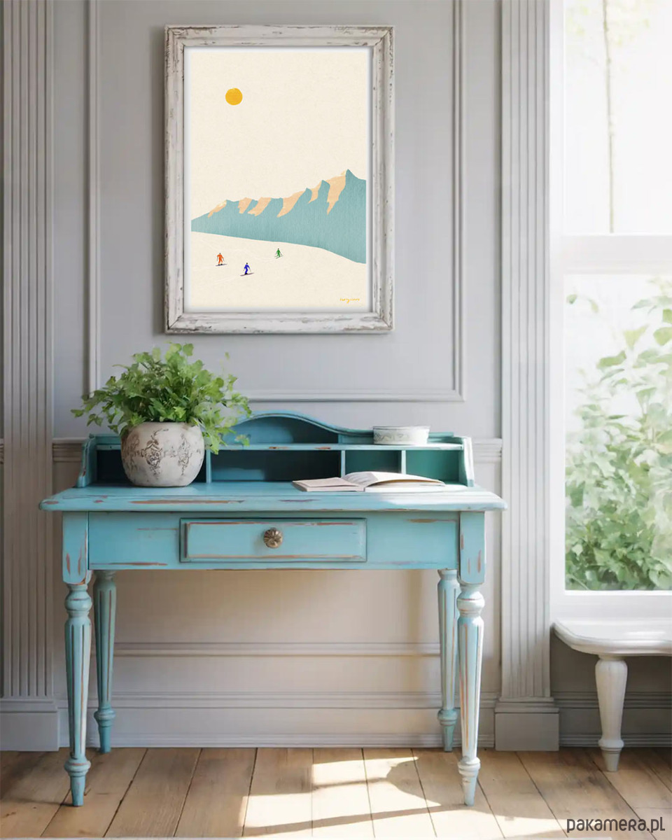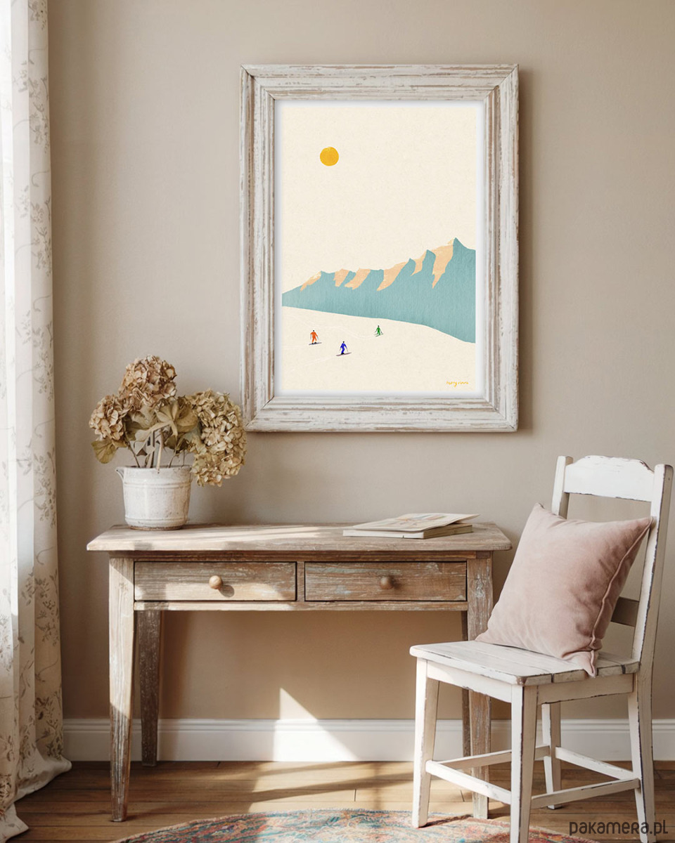 Plakat narciarski to idealna dekoracja niezależnie od pory roku. Dla każdego fana i fanki zimowych wyzwań na śniegu.