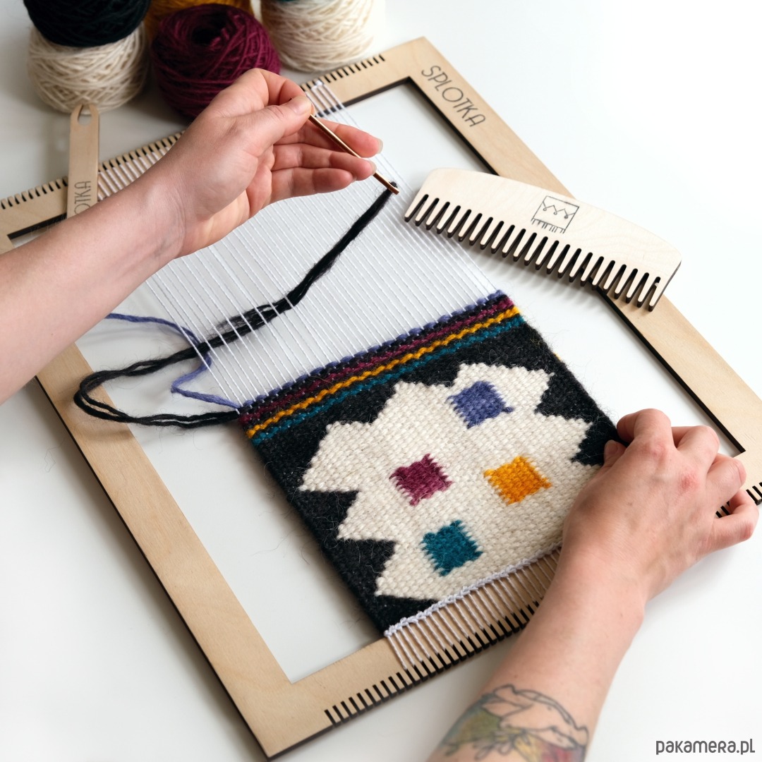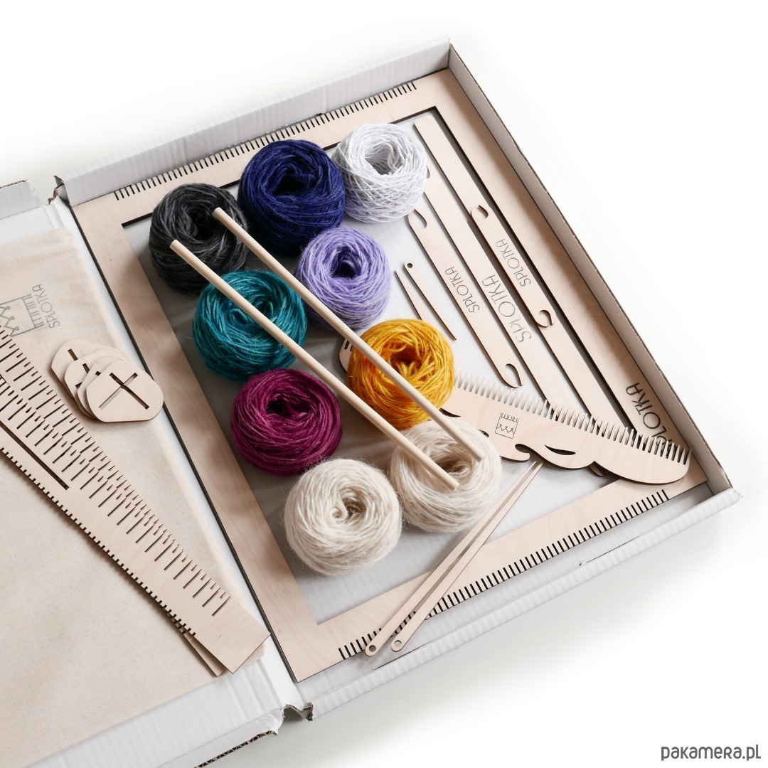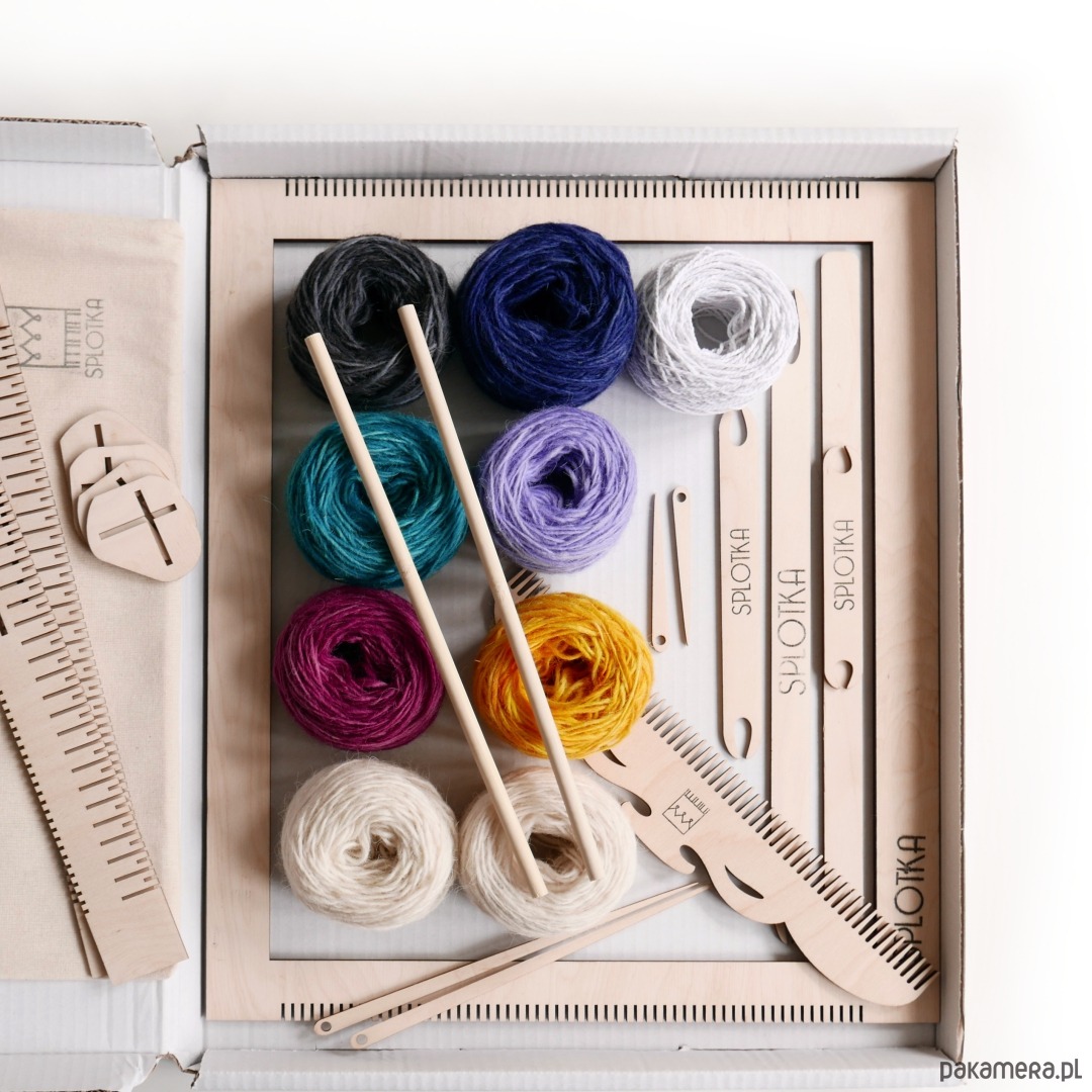 Zestaw do tkania z materiałami jest zbiorem wszystkich najważniejszych rzeczy, których potrzebujesz do postawienia swoich pierwszych kroków ze splotem. Znajdują się w nim niezbędne narzędzia, wątek, osnowa i akcesoria. Dodatkowo do zestawu dorzucony są projekty kilimów, które są dopasowane do wymiarów ramki. Na dużej ramce oczywiście możesz realizować również małe wzory.