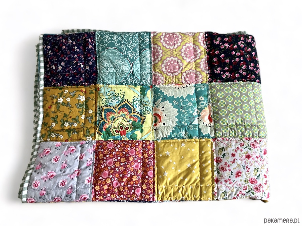 Wykonany z tkanin bawełnianych, popeliny bawełnianej, batików i innych tkanin bawełnianych o pięknych kolorach i wzorach, będzie przemiłym akcentem dekoracyjnym i świetną funkcjonalną narzutą.