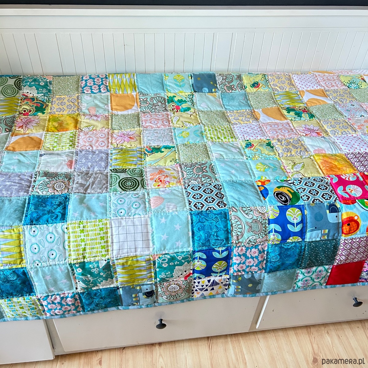 Niezwykle radosna i kolorowa narzuta patchworkowa Ombre, to propozycja do pokoju przedszkolaka. Łagodnie skomponowane tkaniny tworzą harmonijną całość. Wykonana z tkanin doskonałej jakości głównie amerykańskiej Art Gallery Fabrics jest absolutnym unikatem godnym polecenia.