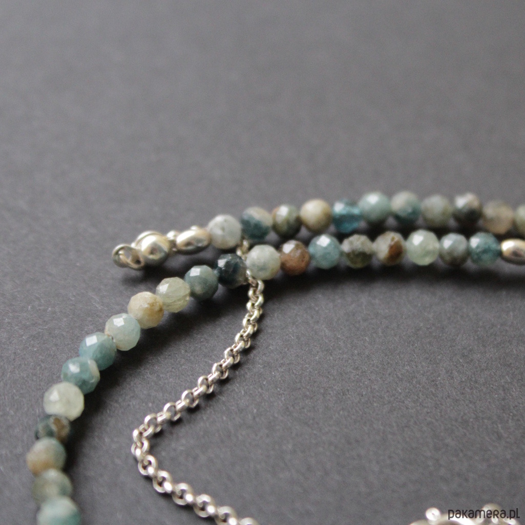 Naszyjnik wykonany został ze srebra próby 925 oraz fasetowanych niebieskich turmalinów wielkości 0,4 cm.