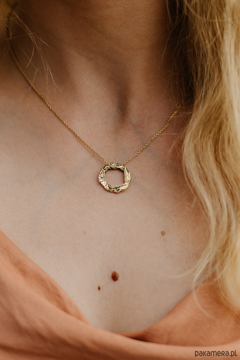 Naszyjnik o nieregularnej strukturze, zamkniętej w formie koła