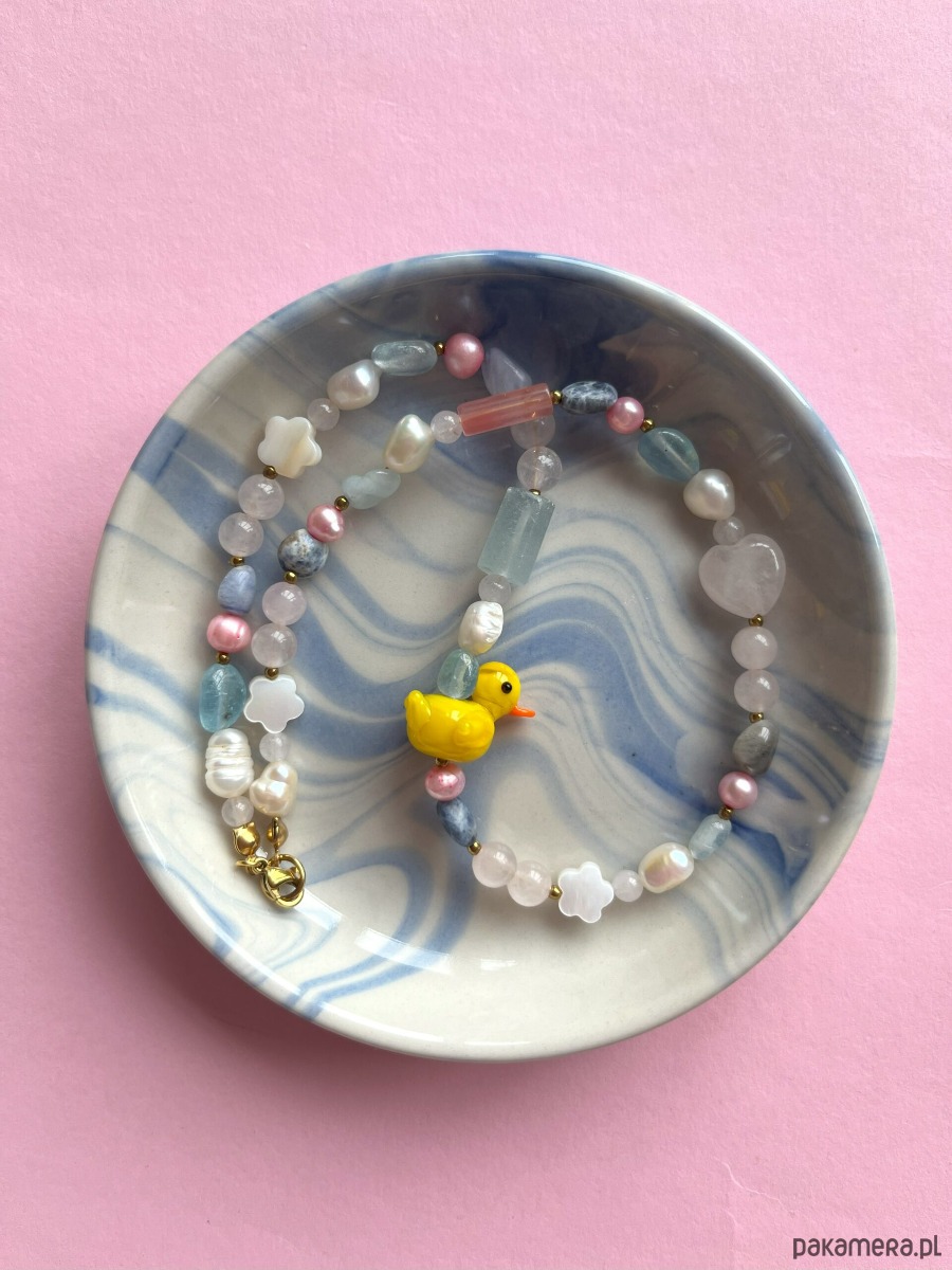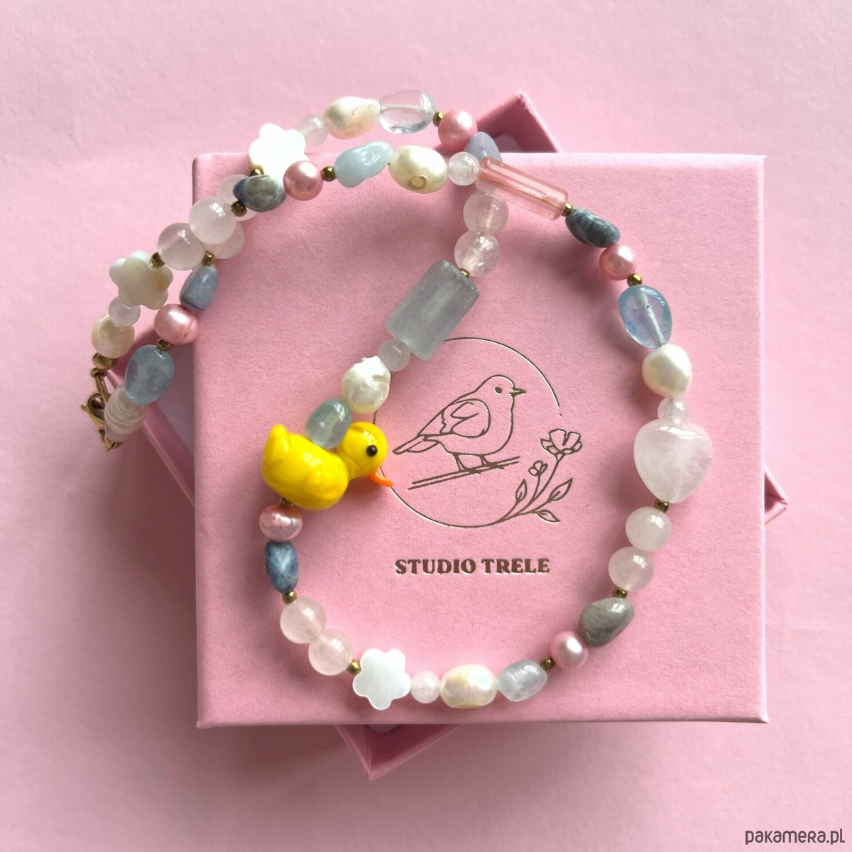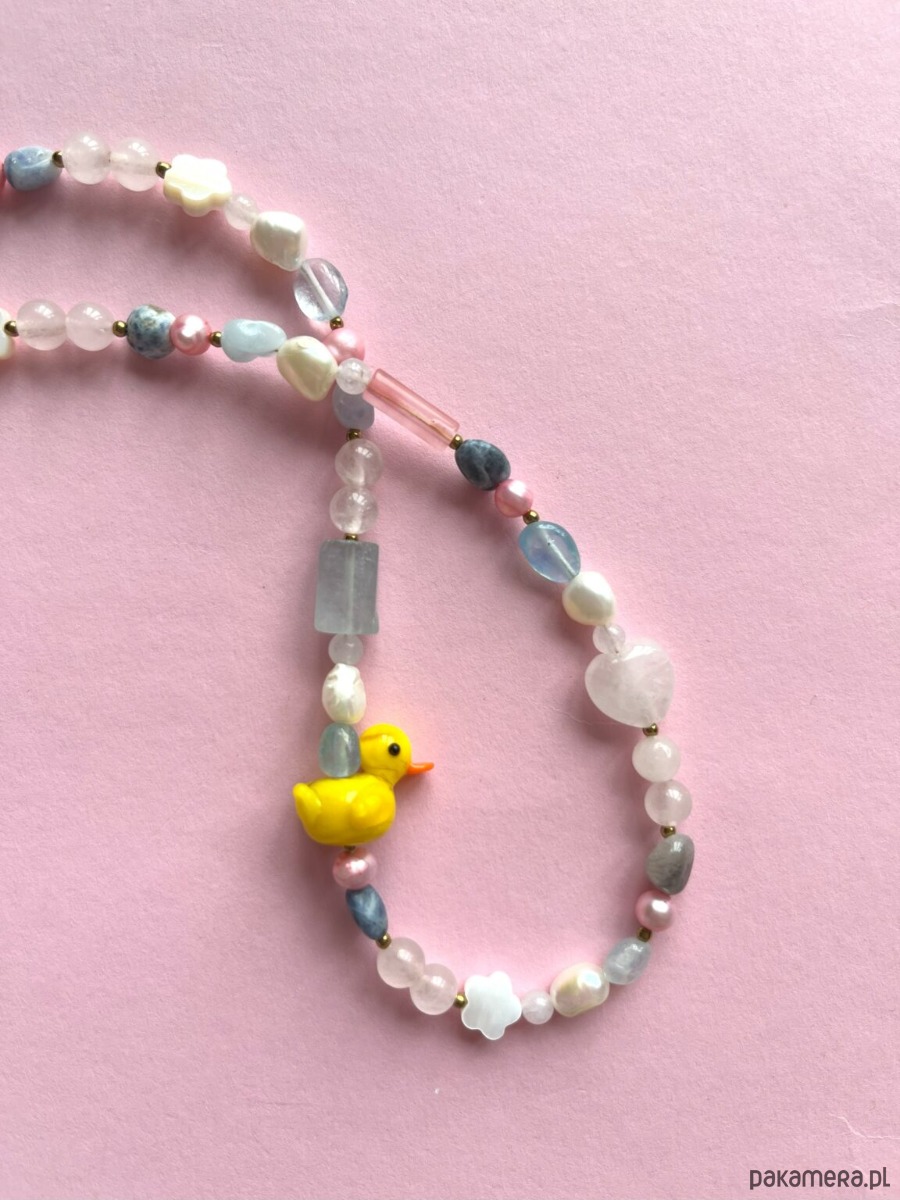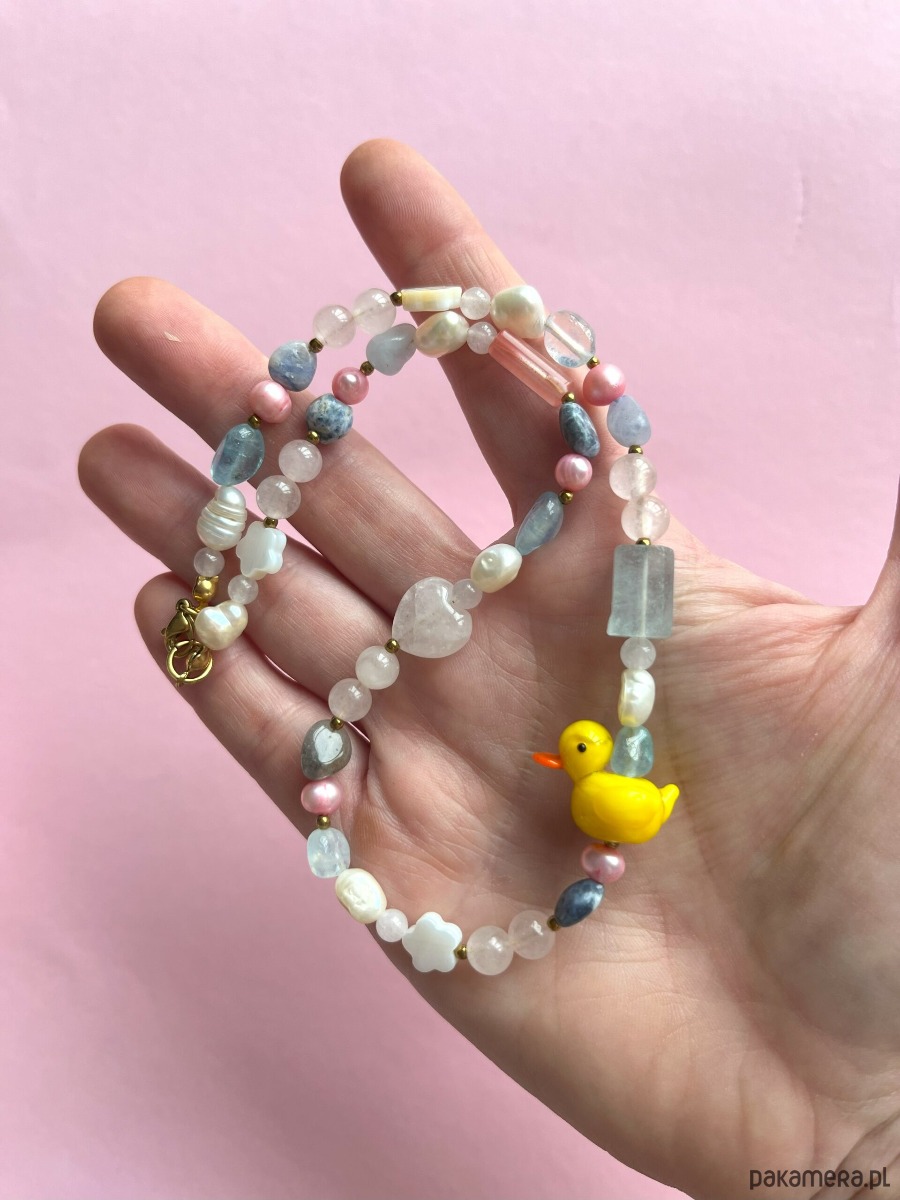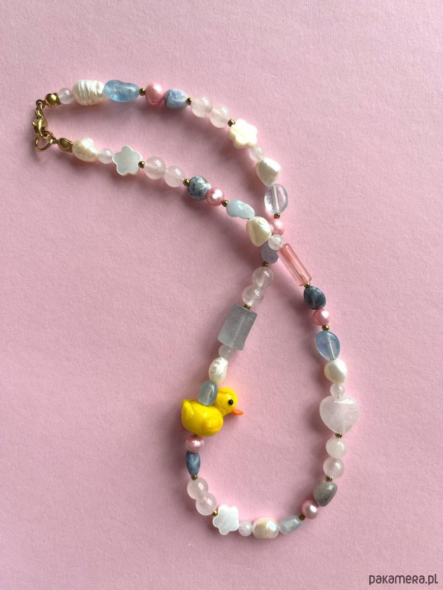 Naszyjnik z przepięknych kamieni naturalnych z twistem w postaci szklanej kaczki