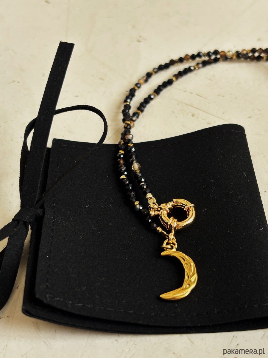 Naszyjnik wykonany jest na lince jubilerskiej z użyciem agatu, zapięcia i księżyca ze stali ch.