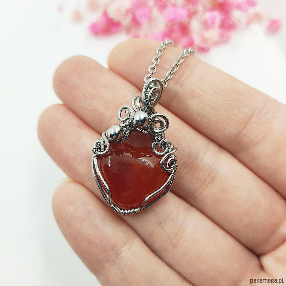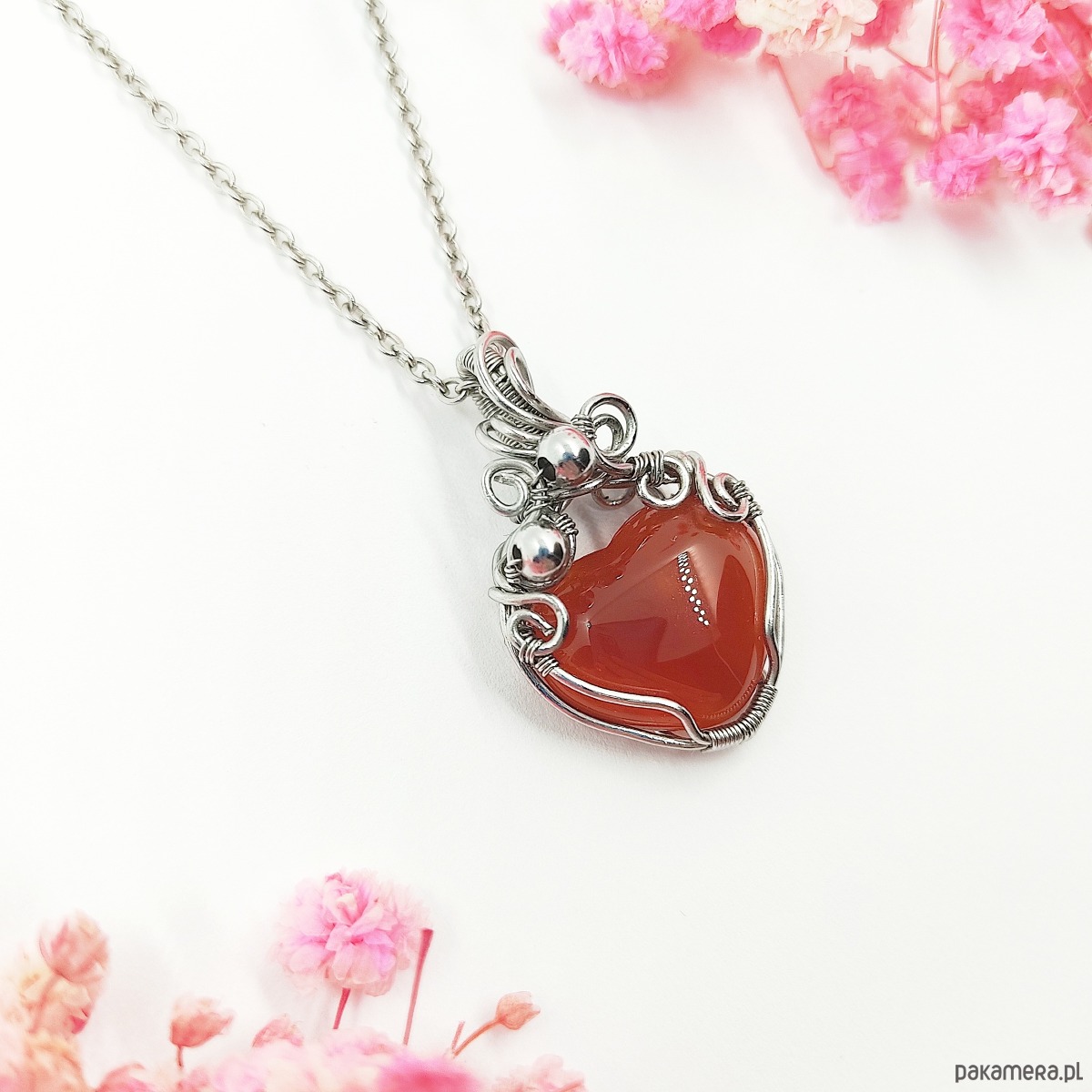 Naszyjnik Agat Serce ręcznie wykonany z drutów ze stali chirurgicznej metodą wire wrapping.