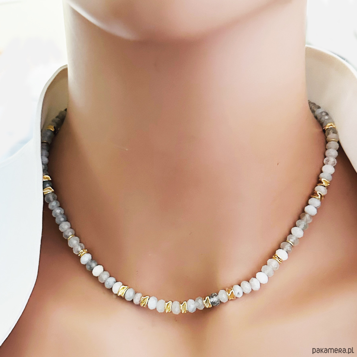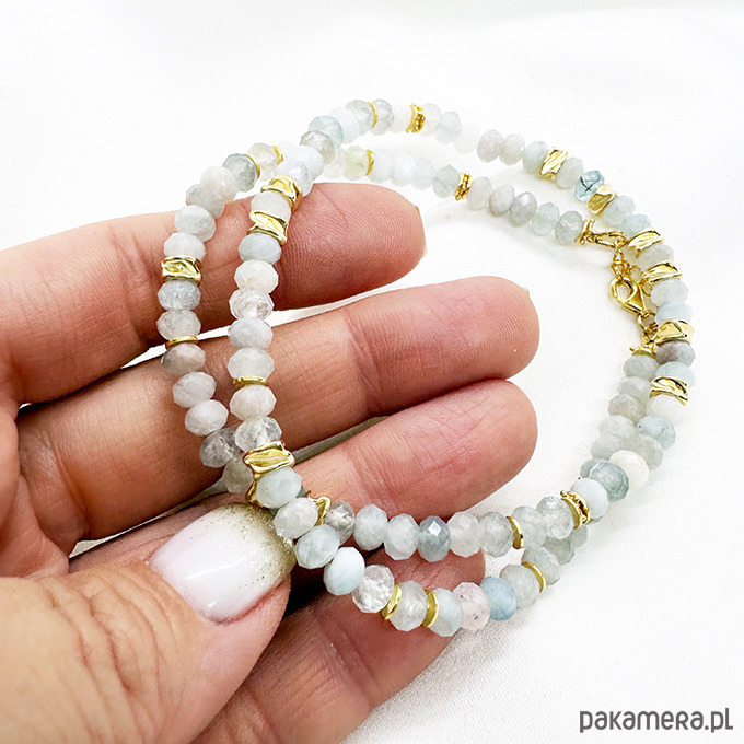 Naszyjnik AKWAMARYN, choker z kamieni naturalnych