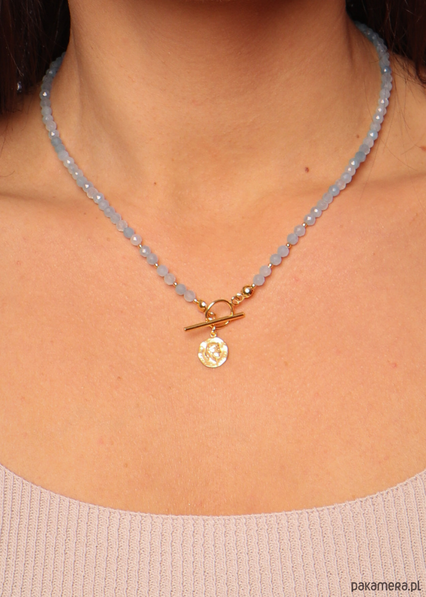 Cechy produktuKamień: akwamarynWielkość kamieni: ok. 4 mmKolor: niebieski, błękitny Wykończenie: srebro pr. 925, pozłacane 24k złotemMożliwość wyboru zawieszki Idealny na prezentWłaściwość kamieniaAkwamaryn to kamień szlachetny, jest uważany za kamień uspokajający, pomagający w redukcji stresu, lęku i napięcia. Działa kojąco na emocje, co może sprzyjać odpoczynkowi i lepszemu snu. Uważa się, że pomaga w otwieraniu serca na miłość, zrozumienie i empatię. Wspomaga wyrażanie swoich myśli w sposób spokojny i klarowny. Wzmacnia intuicję i ochronę energetyczną.Naszyjnik będzie idealnym pomysłem na prezent. Biżuteria, ręcznie wykonywana z akwamarynu wpisuje się w obecne trendy, dzięki czemu możesz mieć pewność, że zachwyci obdarowaną osobę. Nasz naszyjnik z akwamarynu jest uniwersalnym, eleganckim elementem ubioru, który obłędnie wyglądać będzie w zestawieniu z każdą stylizacją. OpakowanieNaszyjnik zapakowany będzie w minimalistyczne, granatowe pudełeczko ze złotym logo. Wewnątrz pudełeczka znajdziesz białą wkładkę z nazwą kamienia oraz jego wyjątkowymi właściwościami. Dbaj o biżuterię. Unikaj kontaktu z wodą, detergentami i kosmetykami.