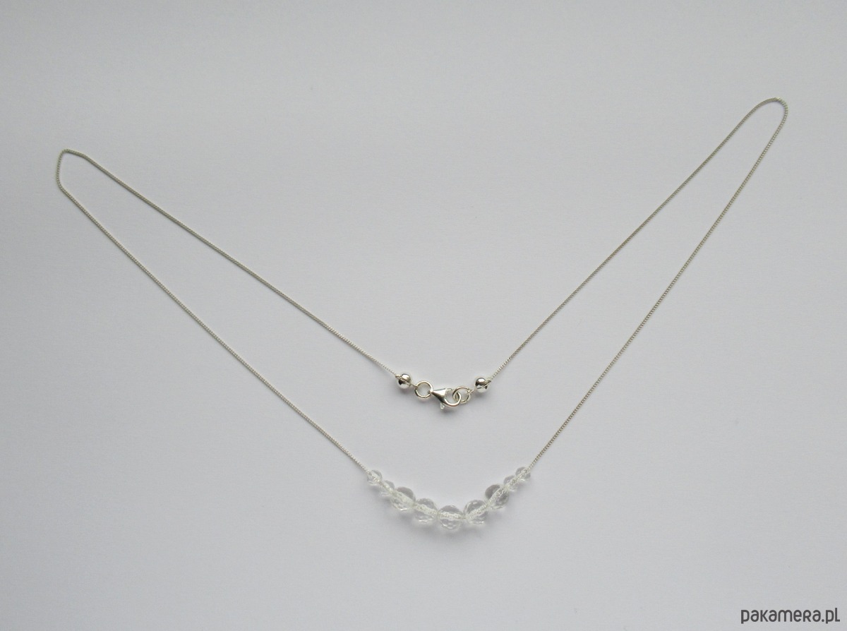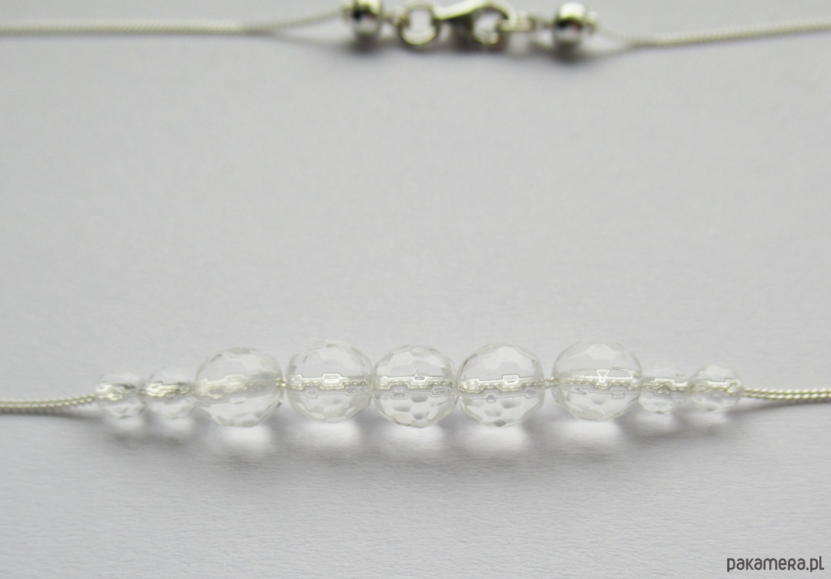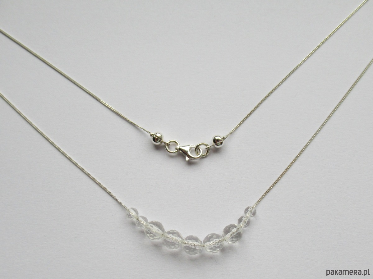 Srebrny naszyjnik z przezroczystych, fasetowanych kamieni kryształu górskiego