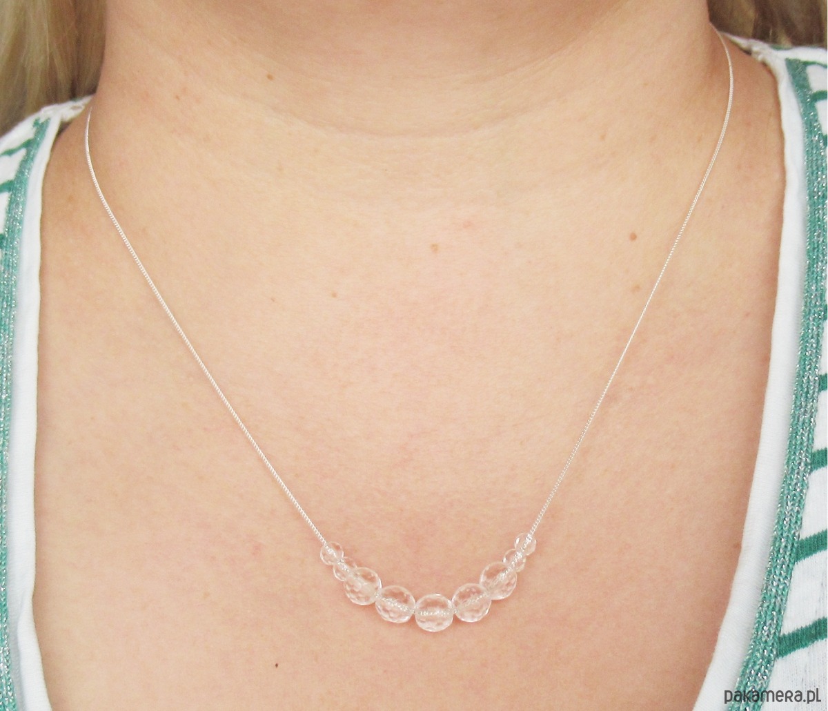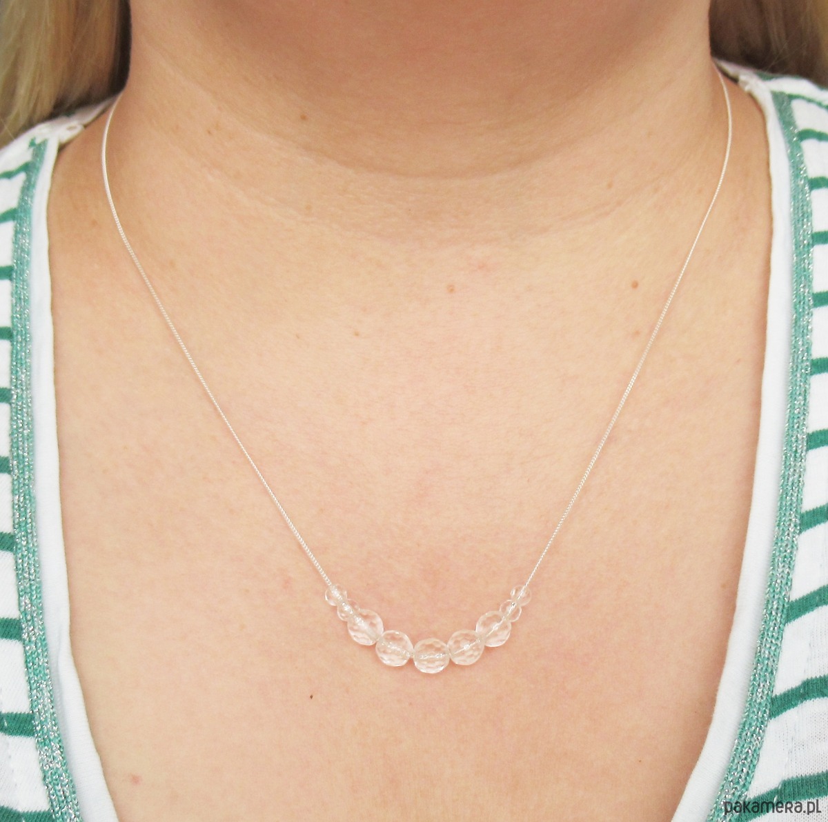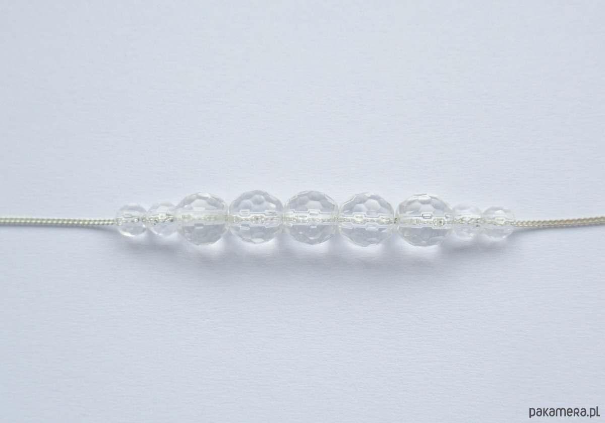 Srebrny naszyjnik z przezroczystych, fasetowanych kamieni kryształu górskiego
