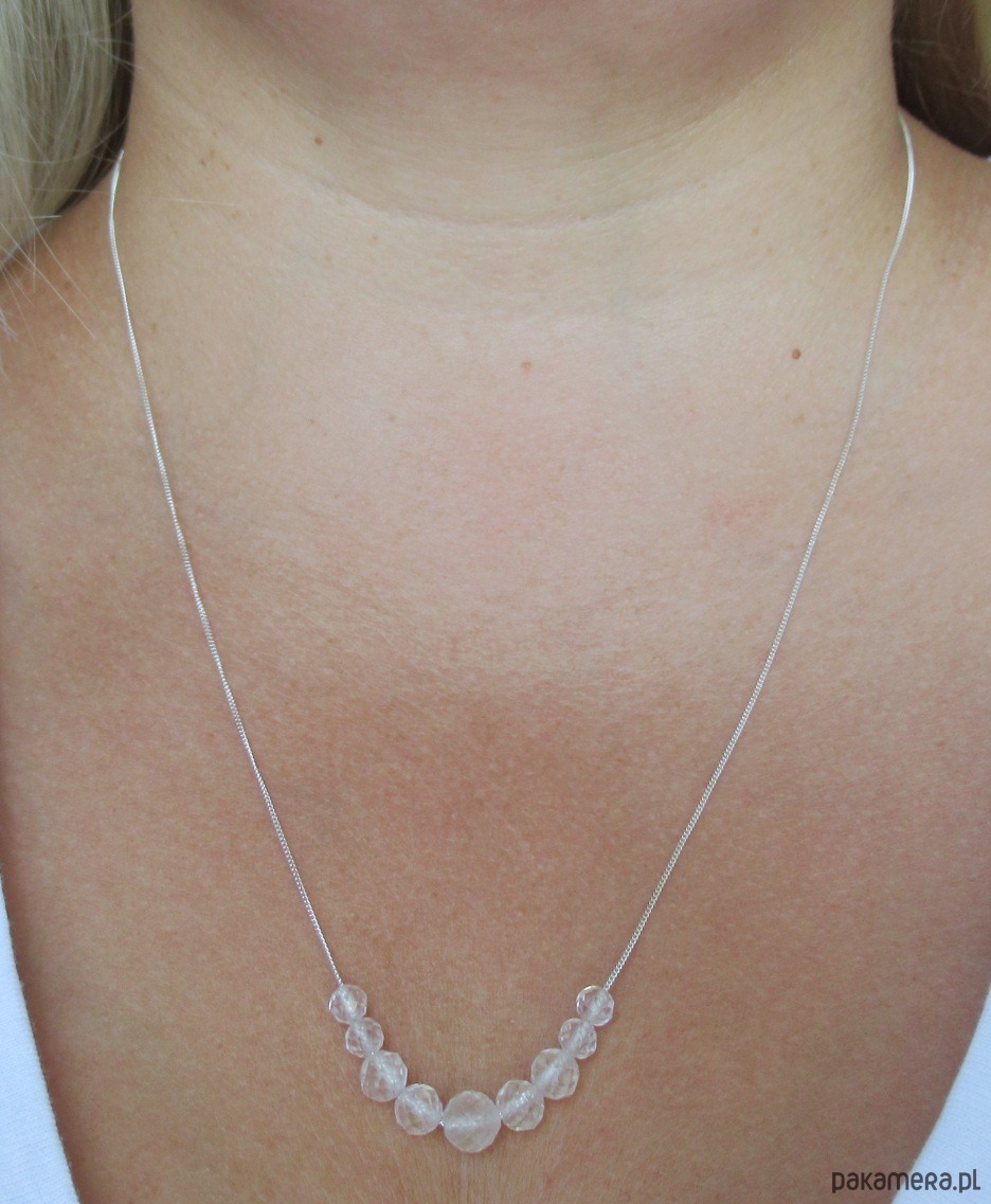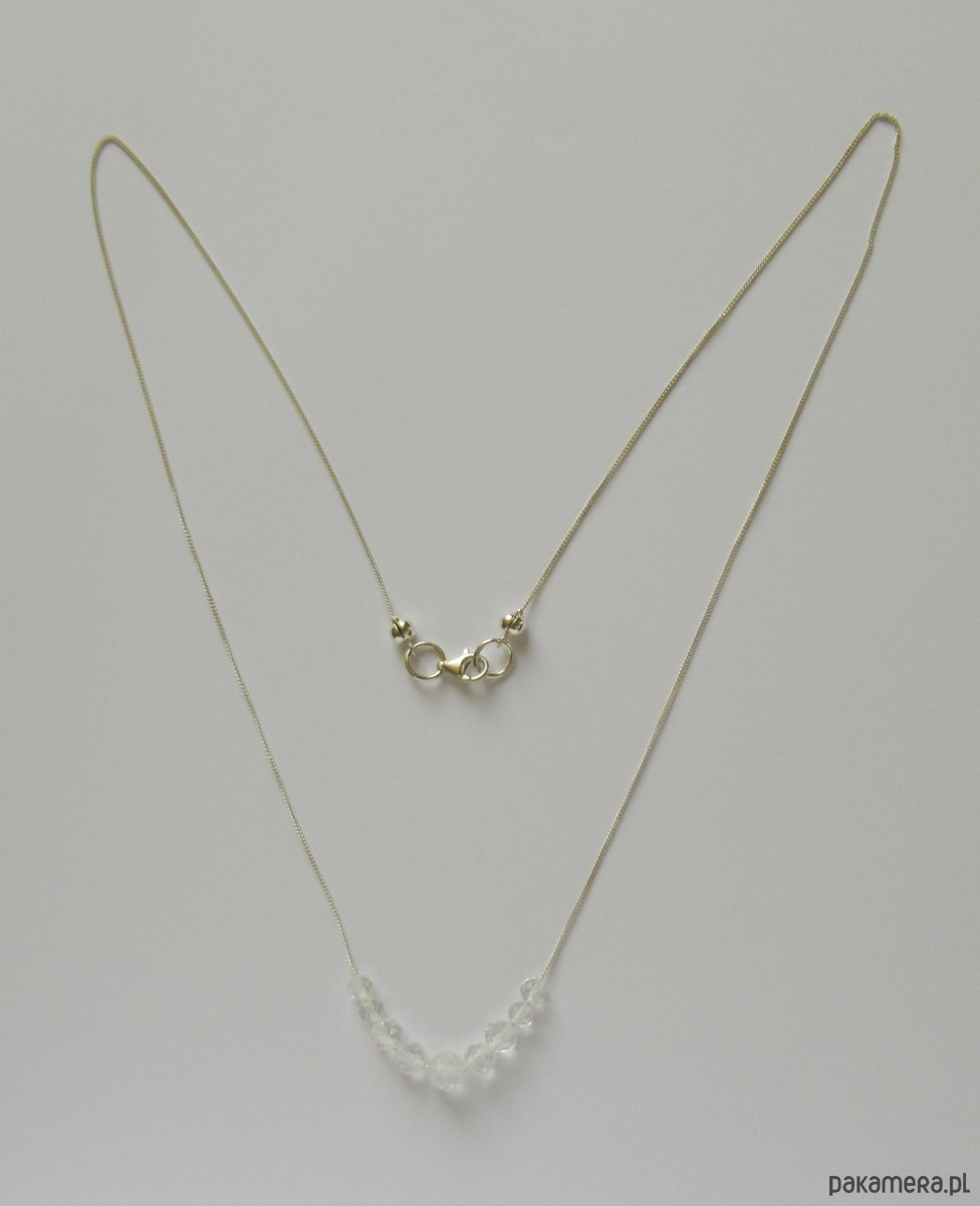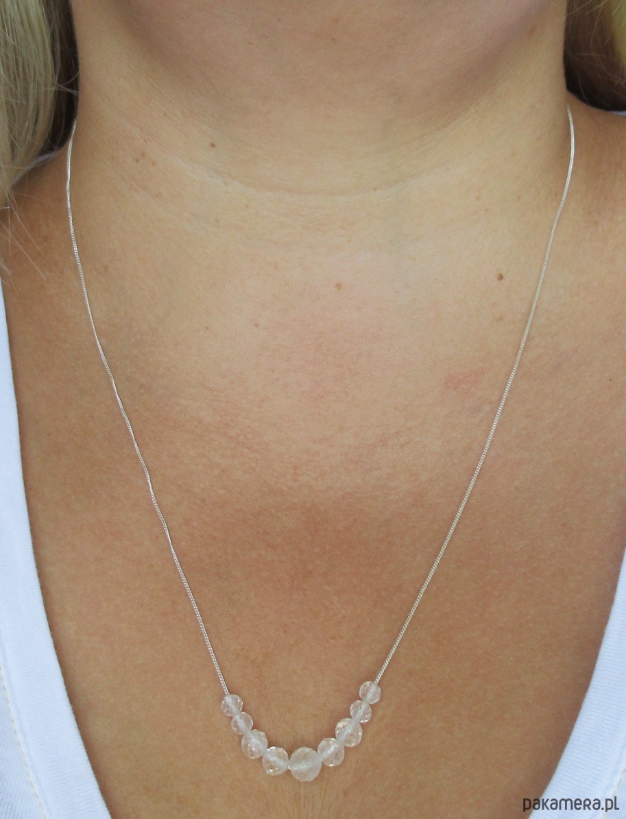 Srebrny naszyjnik z przezroczystych szklanych, fasetowanych oponek