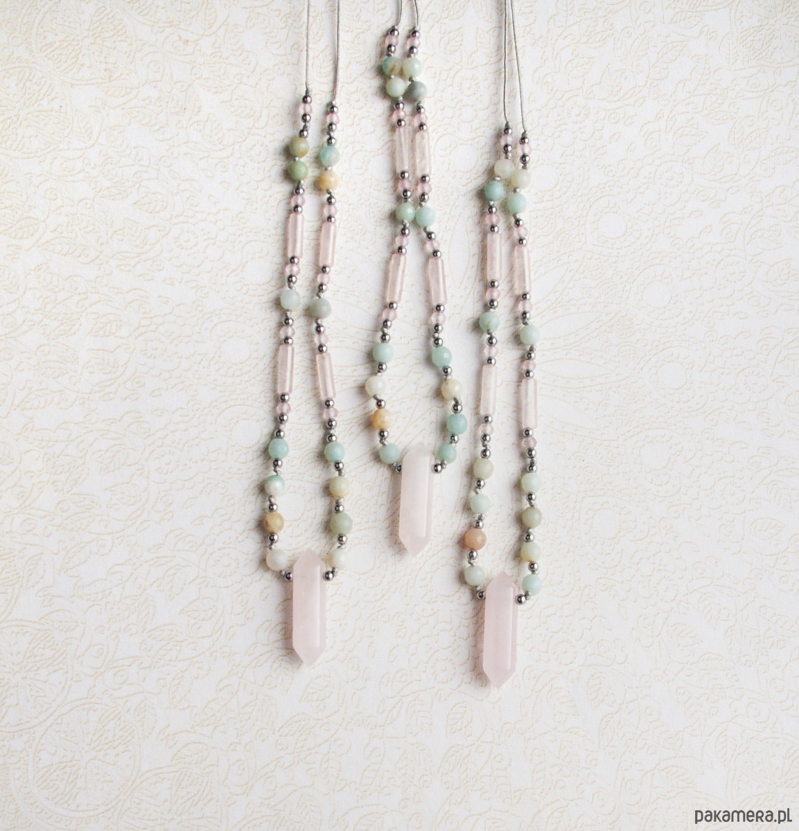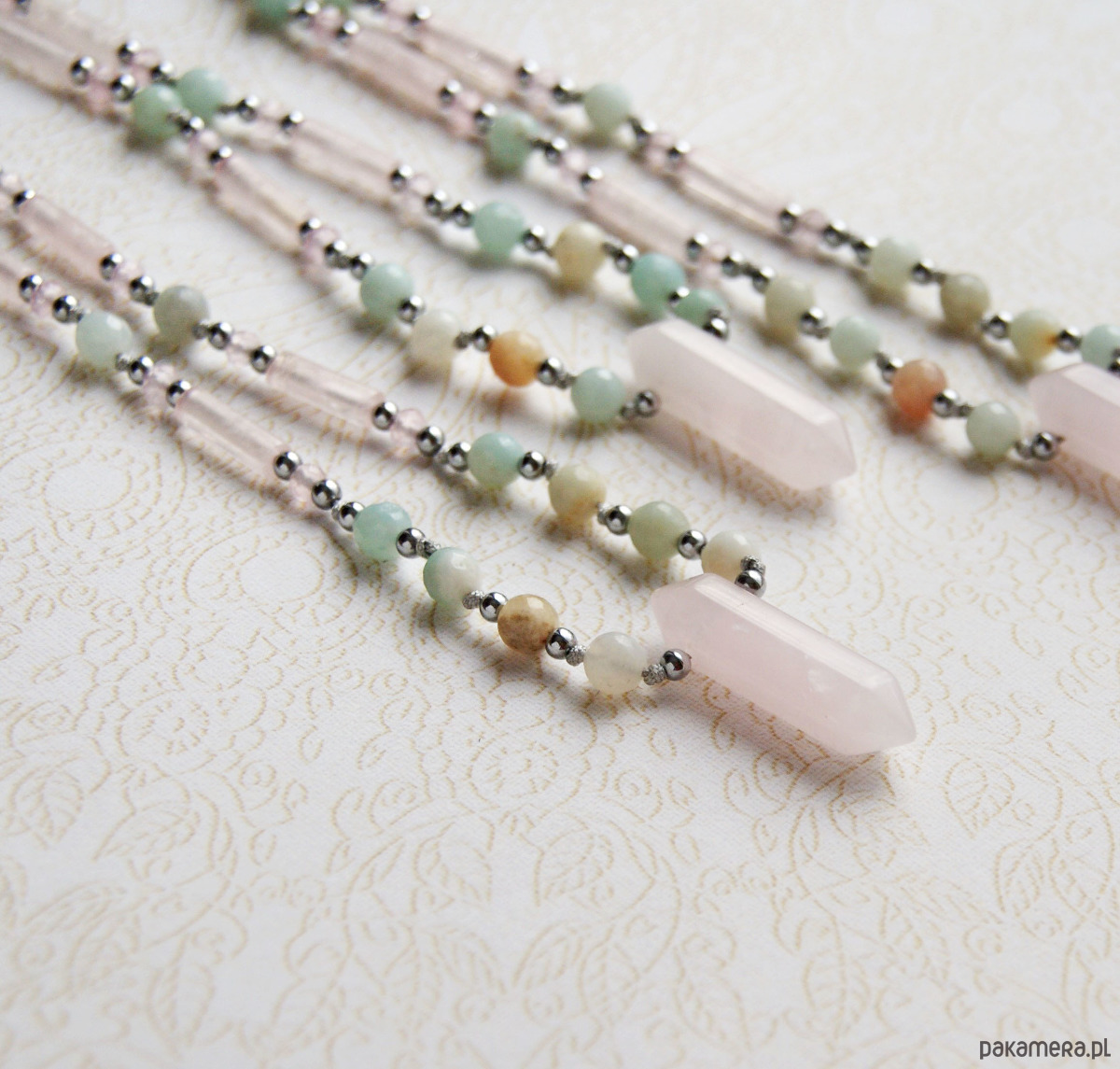 - Rodzaj kamienia: amazonit, hematyt, kwarc różowy