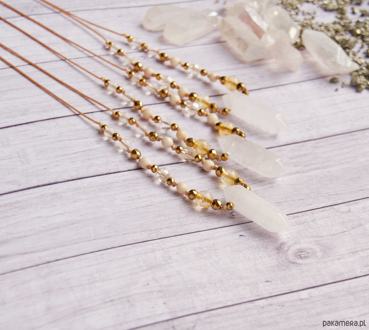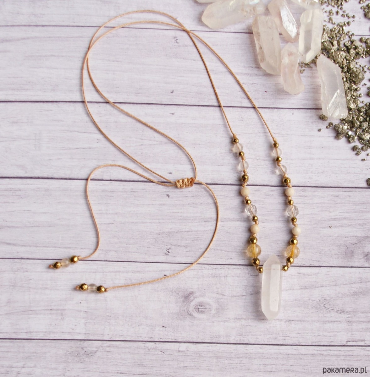 wykończenie przesuwne - dł. regulowana za pomocą przesuwnej plecionki makramowej (dzięki temu naszyjnik jest bardzo praktyczny i możesz go nosić na wiele sposobów - dopasowując długość do Twoich preferencji i danej stylizacji).