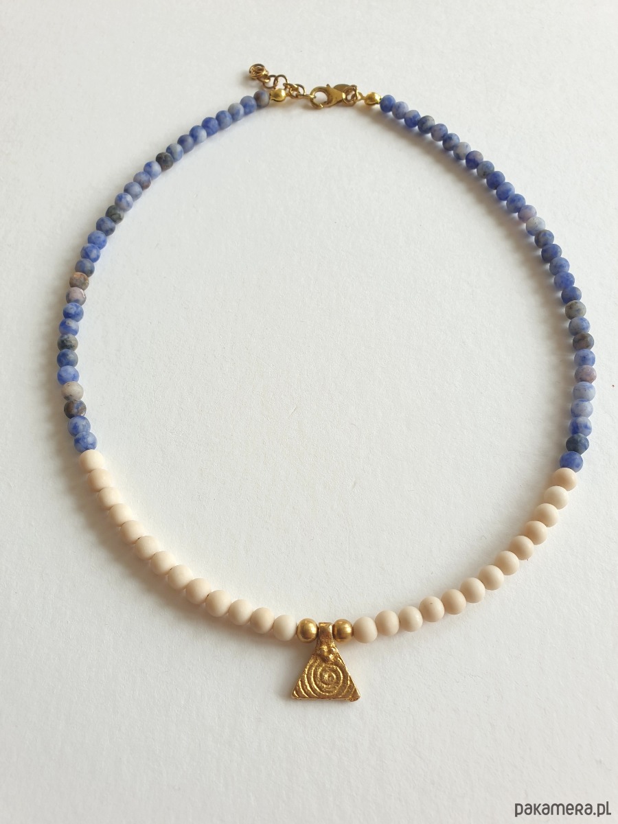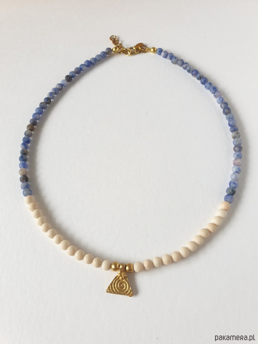 Naszyjnik ANTYK jaspis niebieski, kamień rzeczny, piramida mosiądz