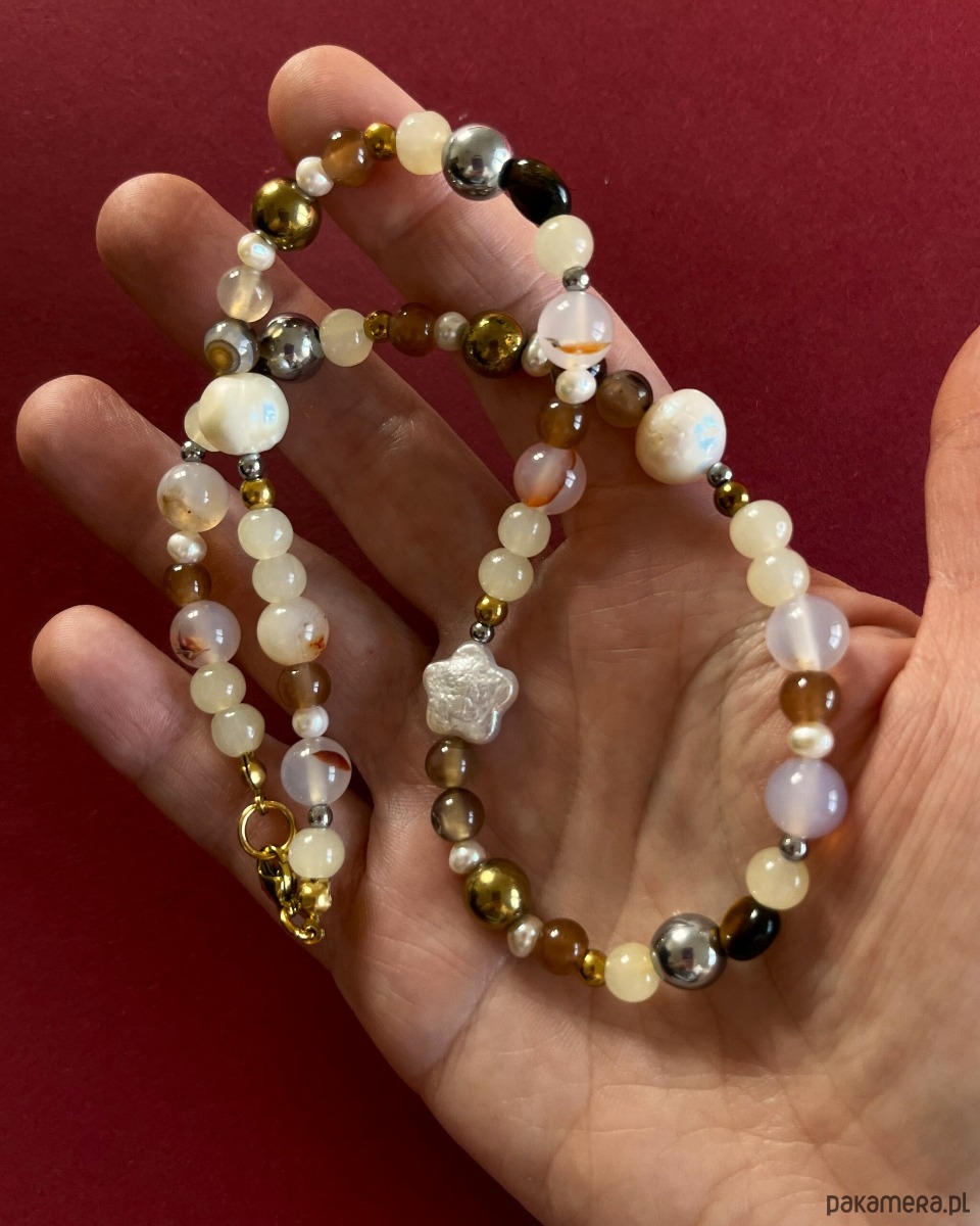- Materiał: perły, kamień naturalny, stal chirurgiczna