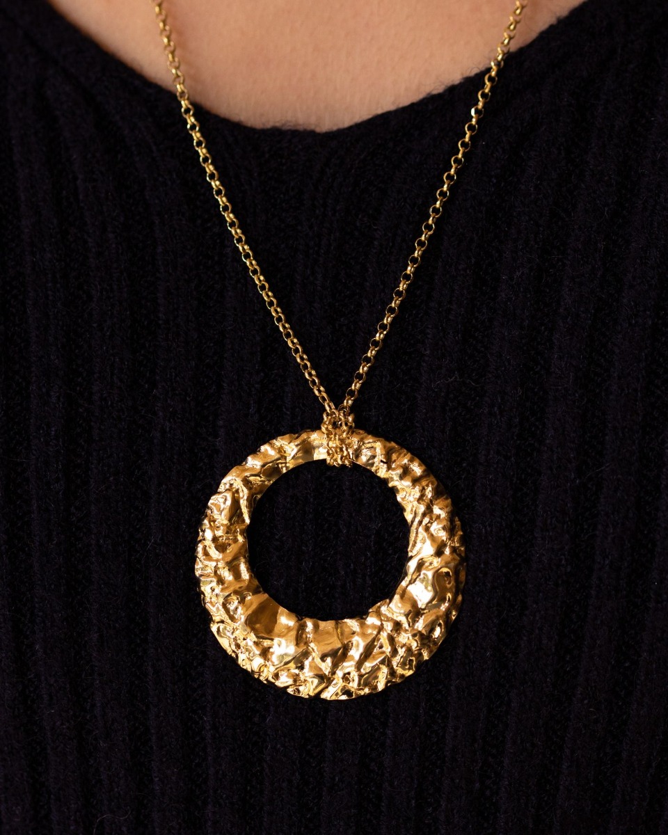 Naszyjnik Aurora pozłacany 18k złotem to subtelna biżuteria inspirowana światłem porannej zorzy. Delikatna forma i elegancki blask sprawiają, że doskonale dopełnia zarówno codzienne, jak i wieczorowe stylizacje. Wykonany ze stali szlachetnej, pokryty 18-karatowym złotem, zachwyca trwałością i ponadczasowym designem.