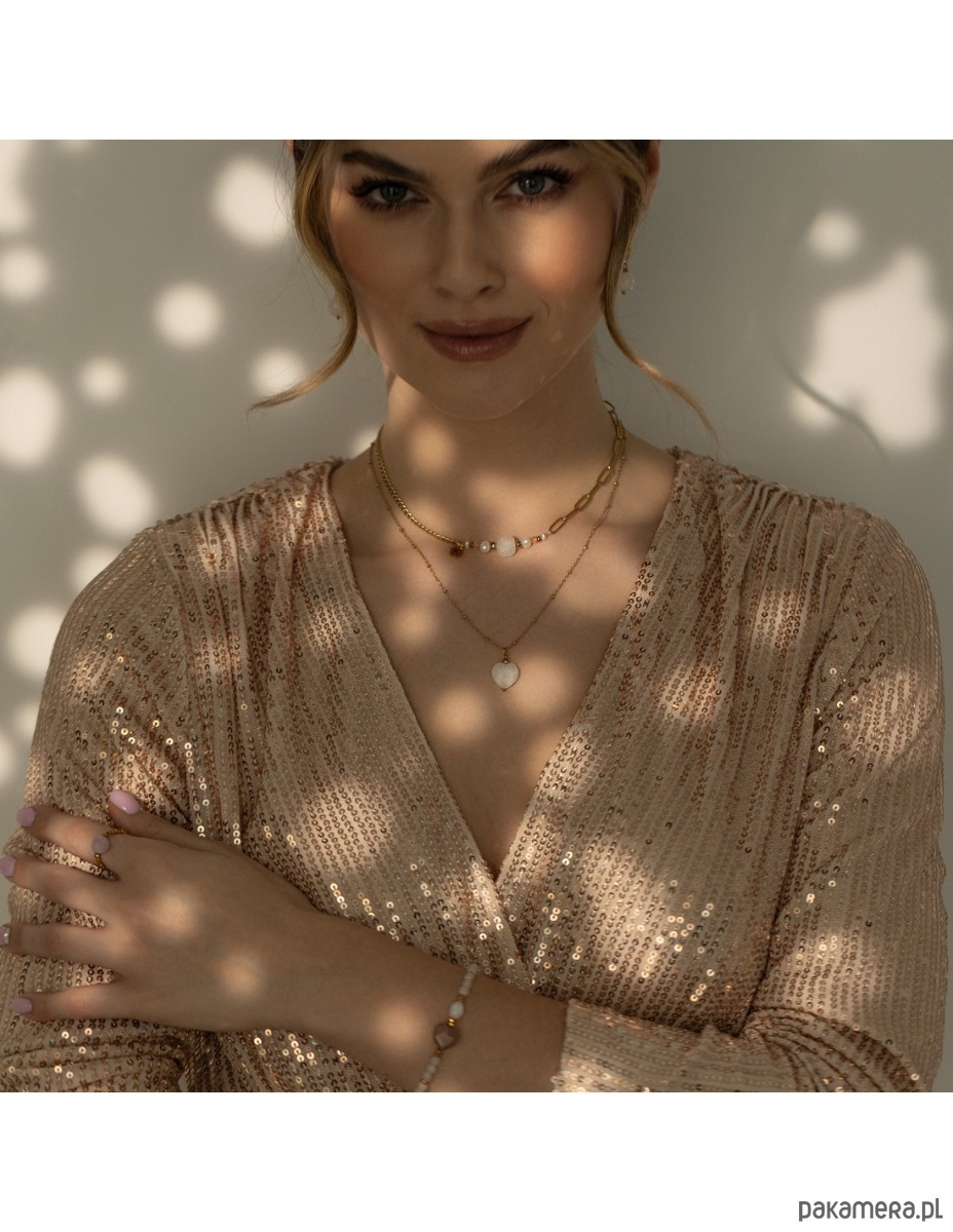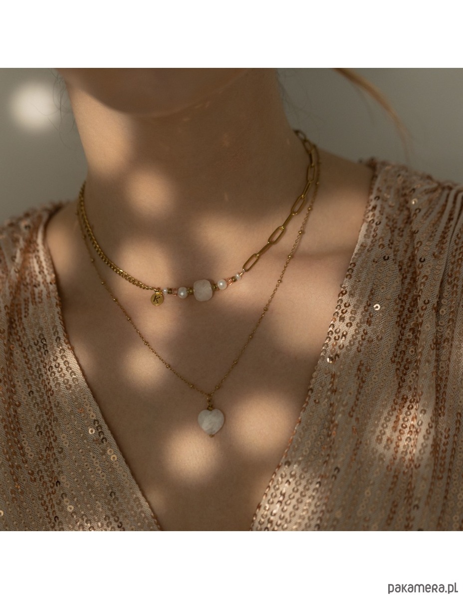 Naszyjnik wykonany jest z antyalergicznej stali szlachetnej pozłacanej, która nie uczula. Bez obaw, pozłocenie pięknie się utrzymuje, nie ciemnieje i nie wyciera.