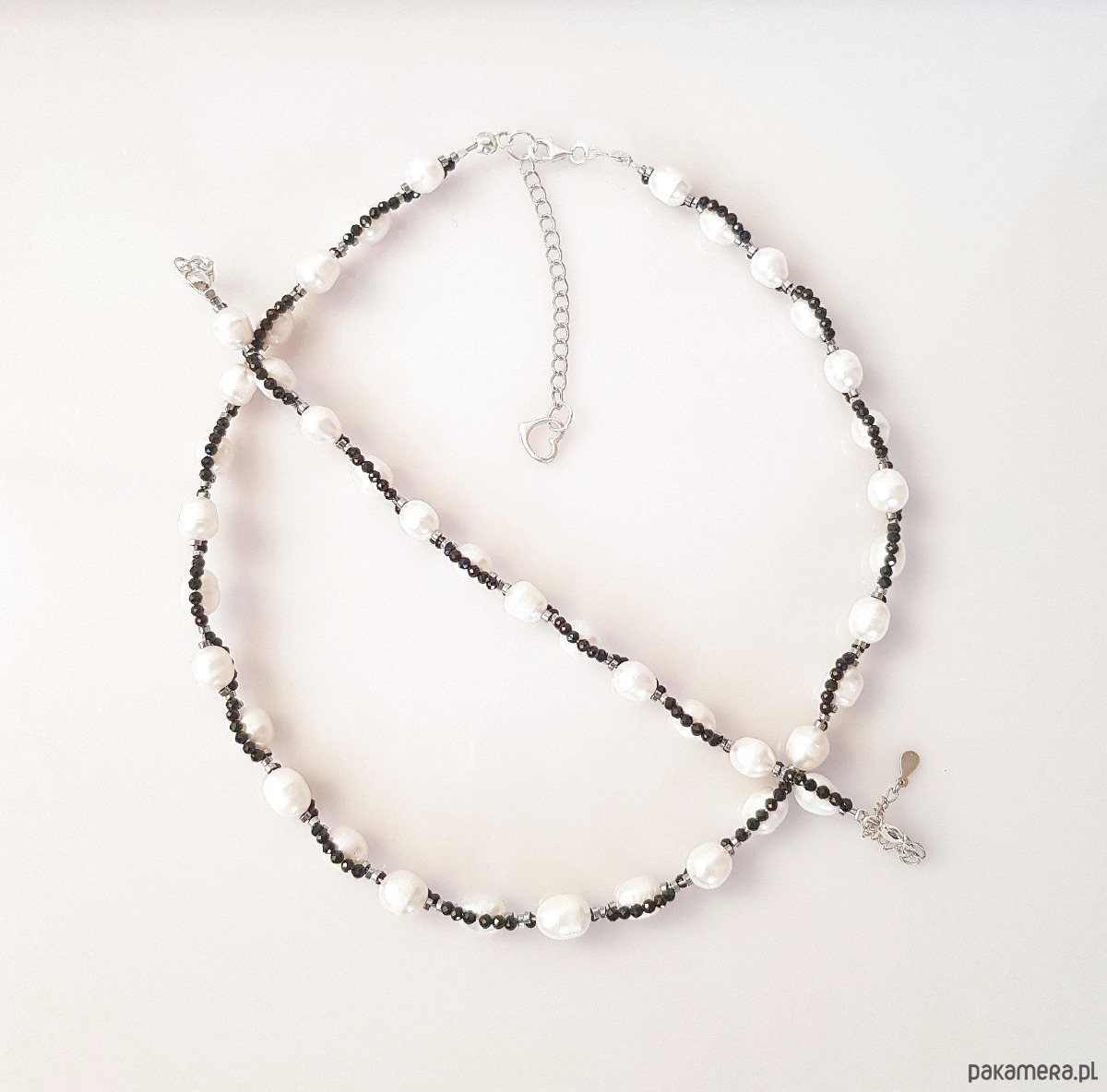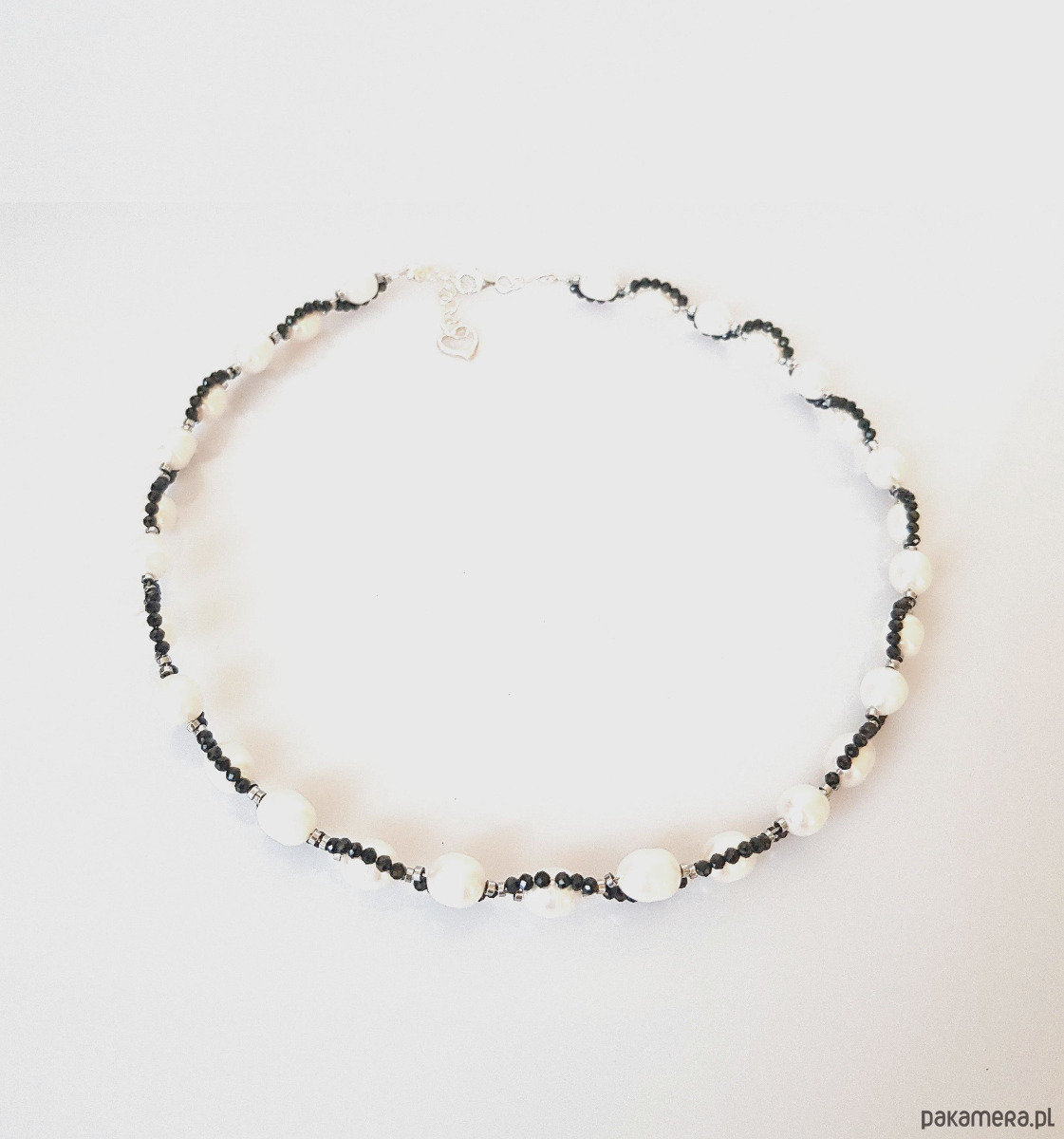 Oryginalny, subtelny, ale wyrazisty czarno biały naszyjnik