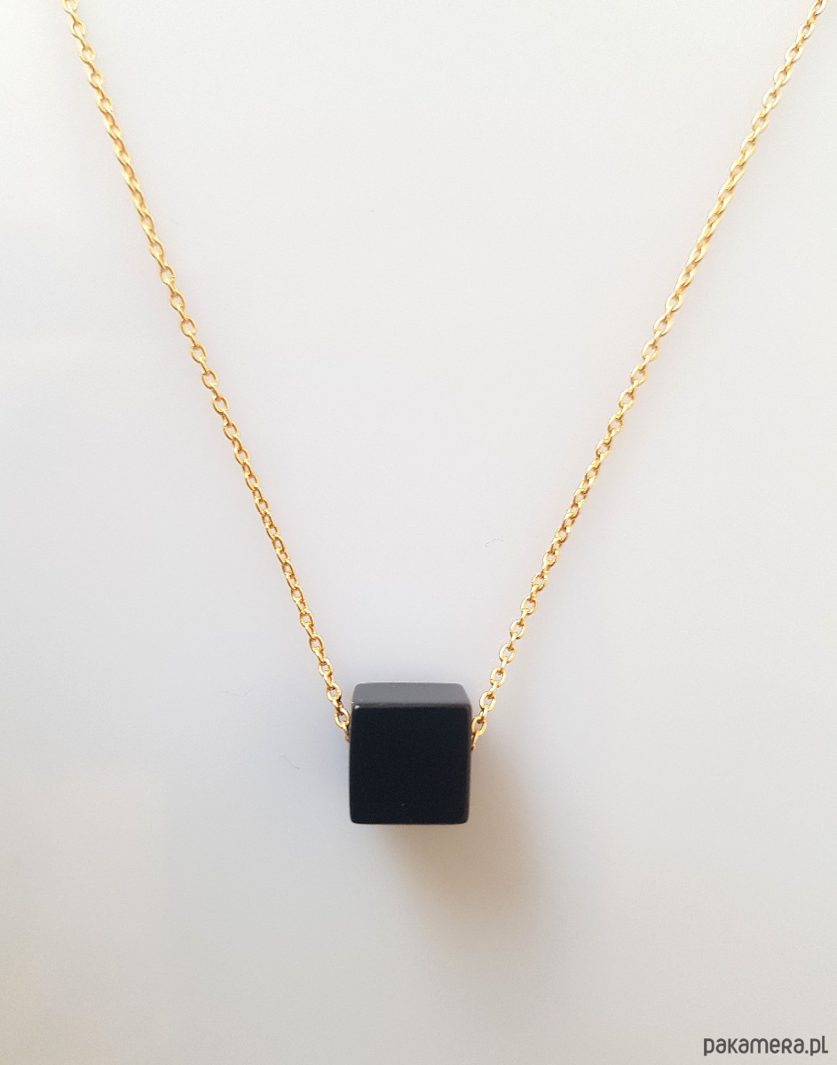 Minimalistyczny, geometryczny, nowoczesny naszyjnik z kostką onyksu.