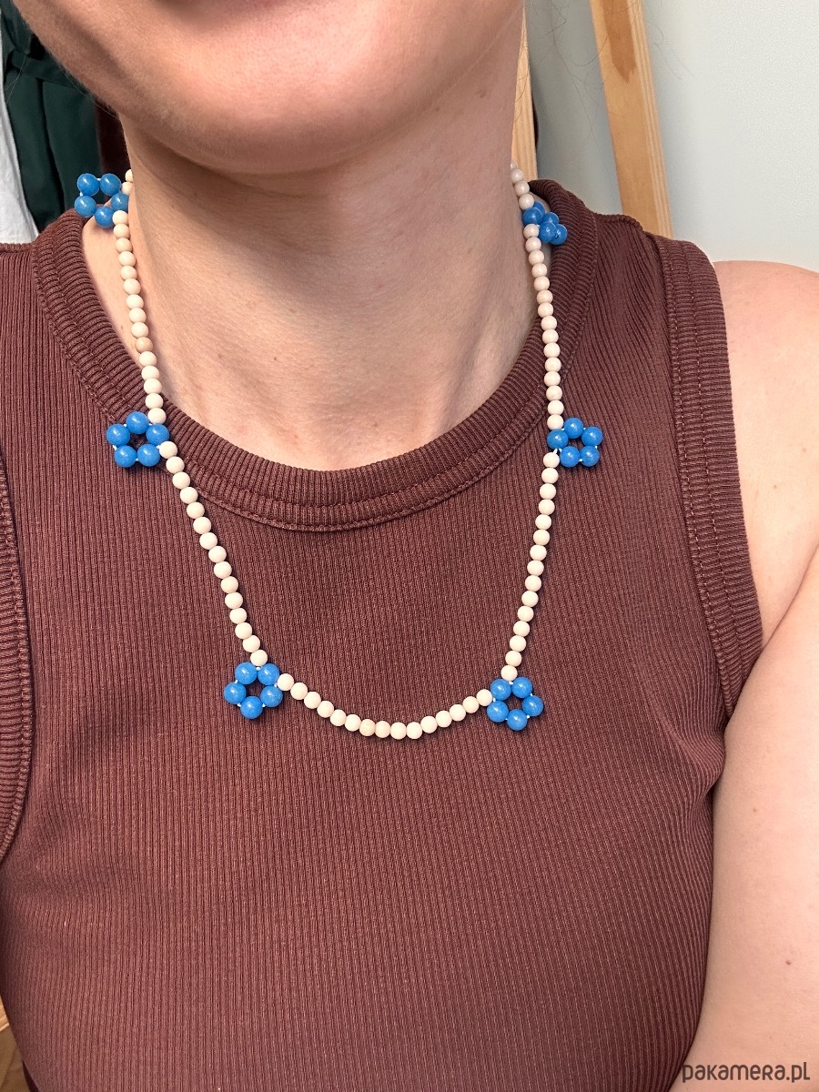 Przepiękny autorski naszyjnik pleciony ręcznie przy użyciu nici jedwabnej.