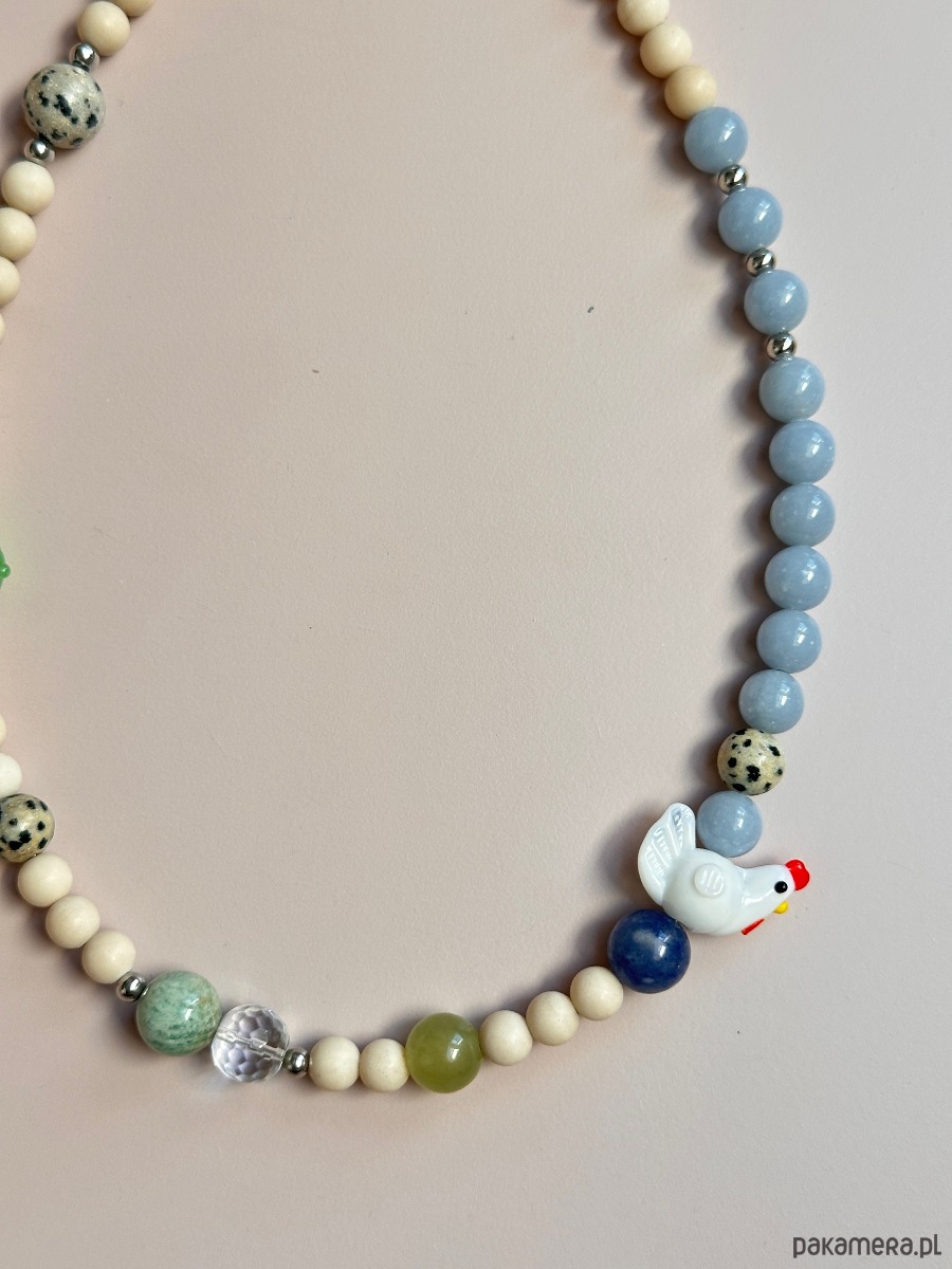 Użyte kamienie to kamień rzeczny, Jaspis dalmatyński, jadeit, Angelit kwarc , cyjanit, amazonit