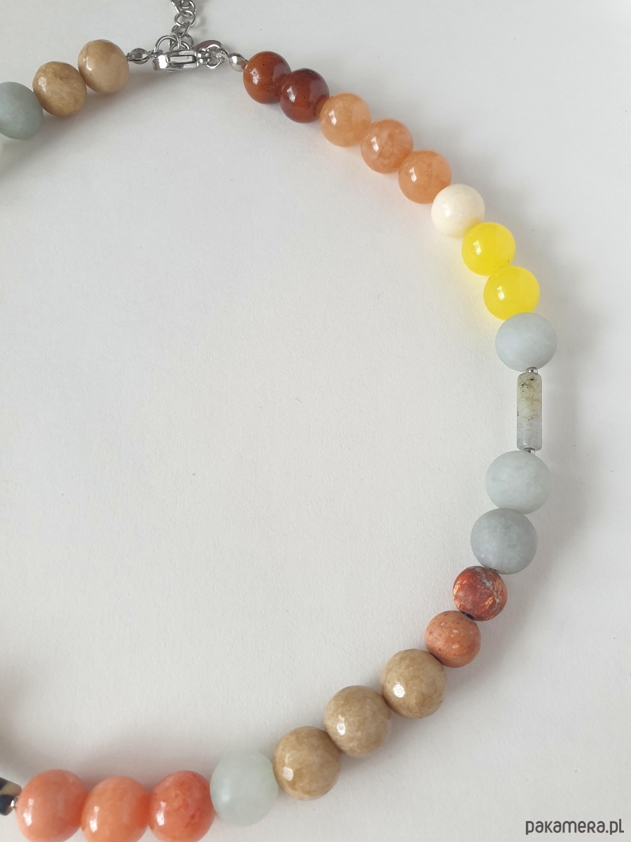 Naszyjnik, BOHO ART jadeit, jaspis, labradoryt, wielobarwny