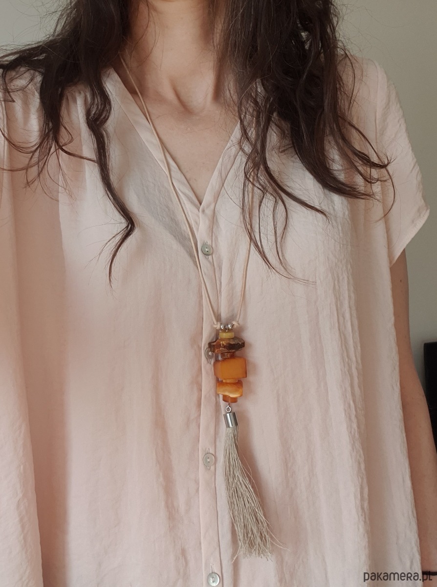 Bursztyn jest lekkim kamieniem, więc pomimo wielkości wisiorka, jest niezwykle wygodny.