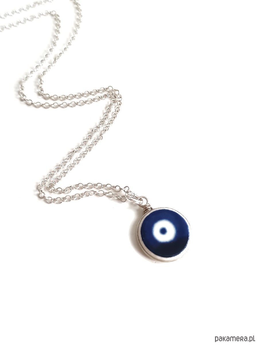 Ceramika w Bolesławcu i jego okolicach produkowana była już w XIV wieku. Do dziś najważniejszy surowiec, czyli glina wydobywany jest na miejscu, a tradycja wyrobu naczyń ceramicznych, rozwijana i kultywowana przez wieki - trwa. Bolesławiec jako marka, tworzona przez kilkadziesiąt różnych manufaktur, znana jest na całym świecie, a charakterystycznego wzoru w kobaltowe kropki nie sposób pomylić z żadnym innym. Co najbardziej wyróżnia Bolesławiec, to że szkliwo nakładane jest ręcznie, za pomocą stempelków z gąbki. Oto naszyjnik, który wykonałam z fragmentu stłuczonego talerza, właśnie z Bolesławca (dekoracja nr 42). Kawałek stłuczki oszlifowałam nadając okrągły kształt, oprawiłam w drucik i zamocowałam na srebrnym łańcuszku (srebro 925). Ceramikę zeszlifowałam również z grubości - jest cieńsza niż pierwotnie, dzięki czemu zawieszka nie jest masywna. Brzegi i tył pokryłam lakierem, co sprawia, że nie brudzą się i nie chłoną wilgoci. Średnica zawieszki ceramicznej: 13 mm. Długość łańcuszka w całości: 45 cm. Unikat - każdy z moich wyrobów występuje w jednym egzemplarzu. Upcykling - nie reprodukuję wykorzystywanych wzorów, niczego nie domalowuję - wykorzystuję wyłącznie oryginalne naczynia i motywy, które się na nich znajdują. Tym samym, stłuczce z odzysku nadaję nowe życie.