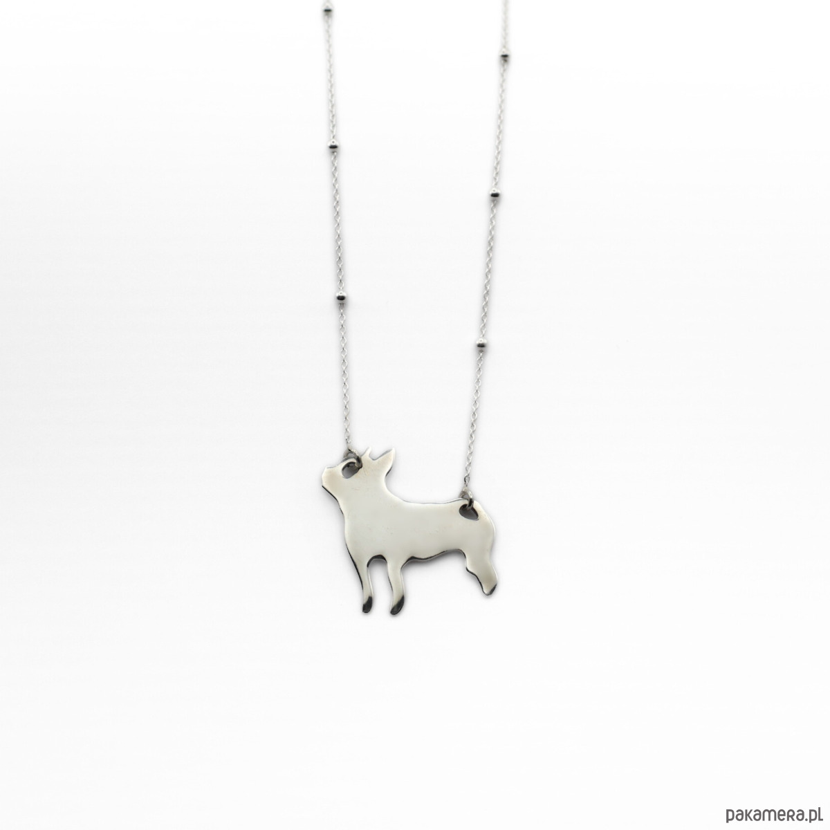 Naszyjnik z dumnym buldożkiem.