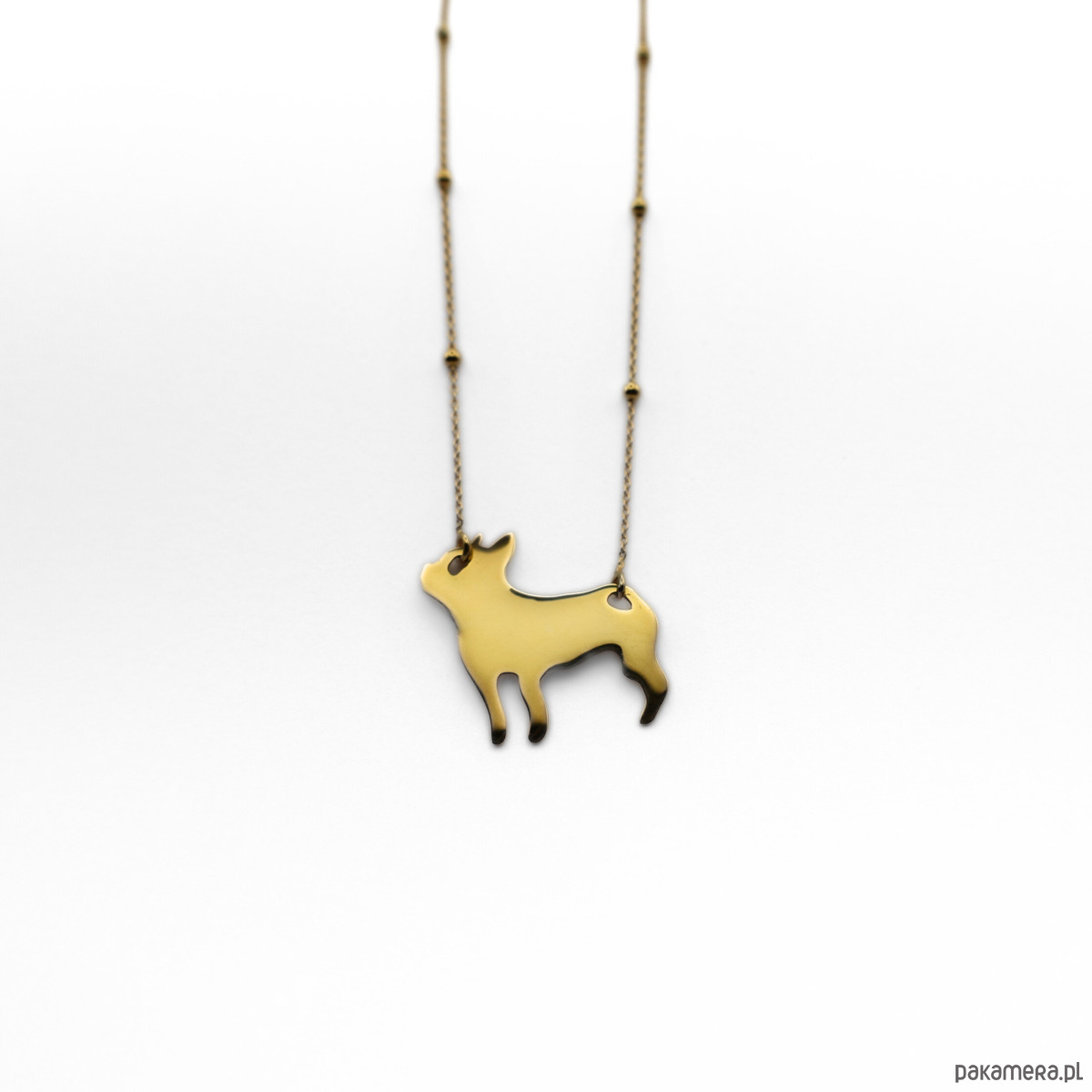 Naszyjnik z dumnym buldożkiem.