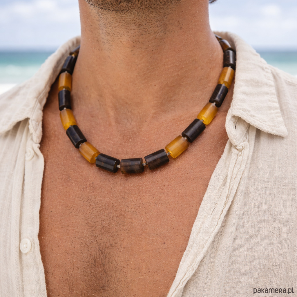 Naszyjnik męski z bursztynu bałtyckiego