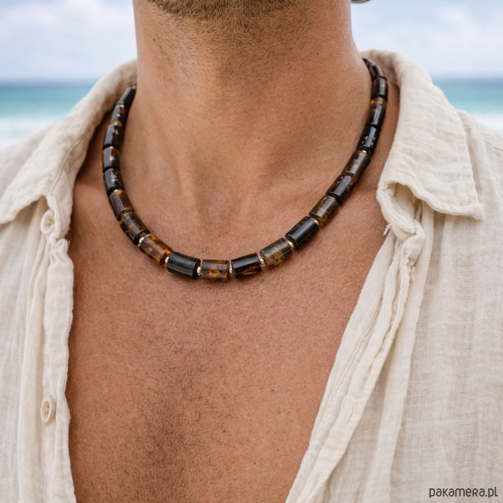 Naszyjnik męski z bursztynu bałtyckiego