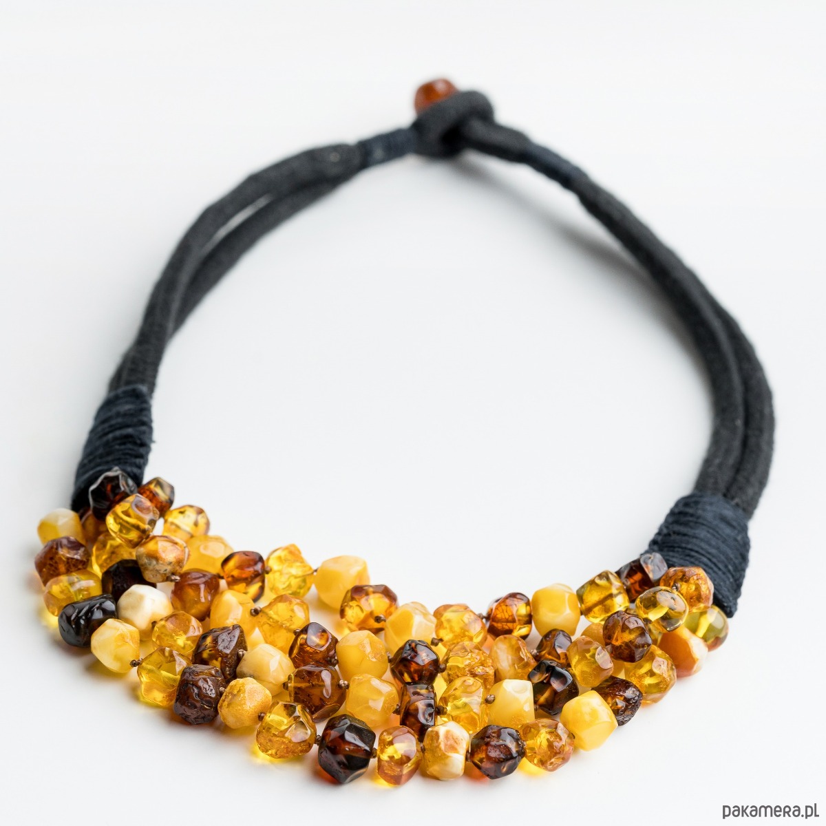 Naszyjnik bursztynowy OBCIOSKI sznurek makrama