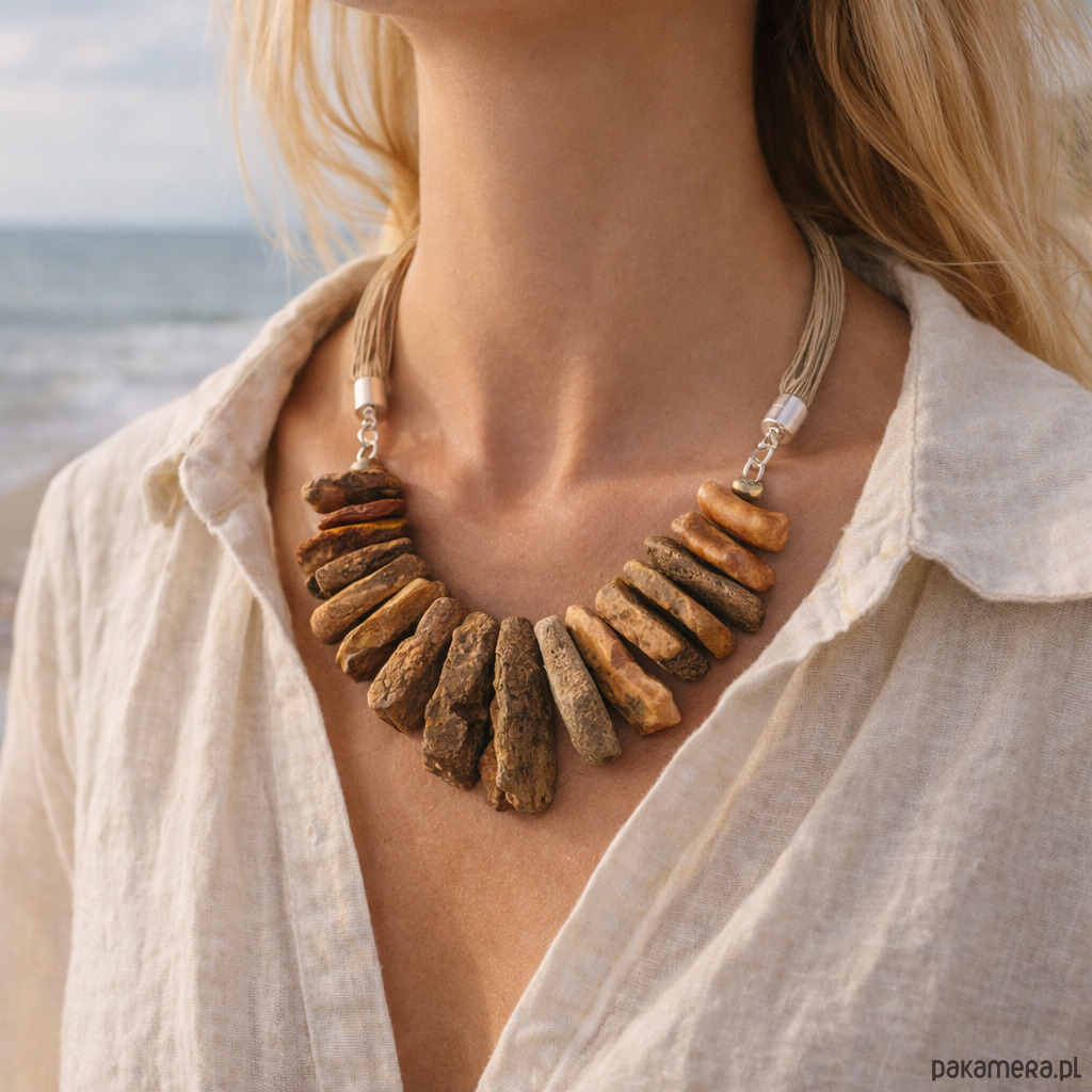 To idealna propozycja dla osób ceniących naturalną biżuterię z bursztynu, estetykę boho, styl etniczny oraz formy inspirowane przyrodą. Naszyjnik doskonale sprawdzi się jako artystyczny dodatek lub oryginalny prezent dla miłośników bursztynu w jego najbardziej pierwotnej odsłonie.